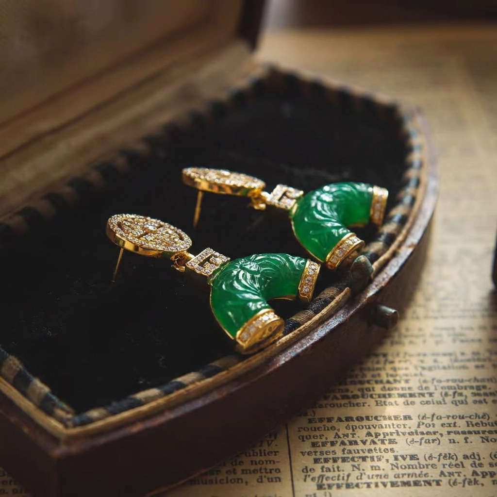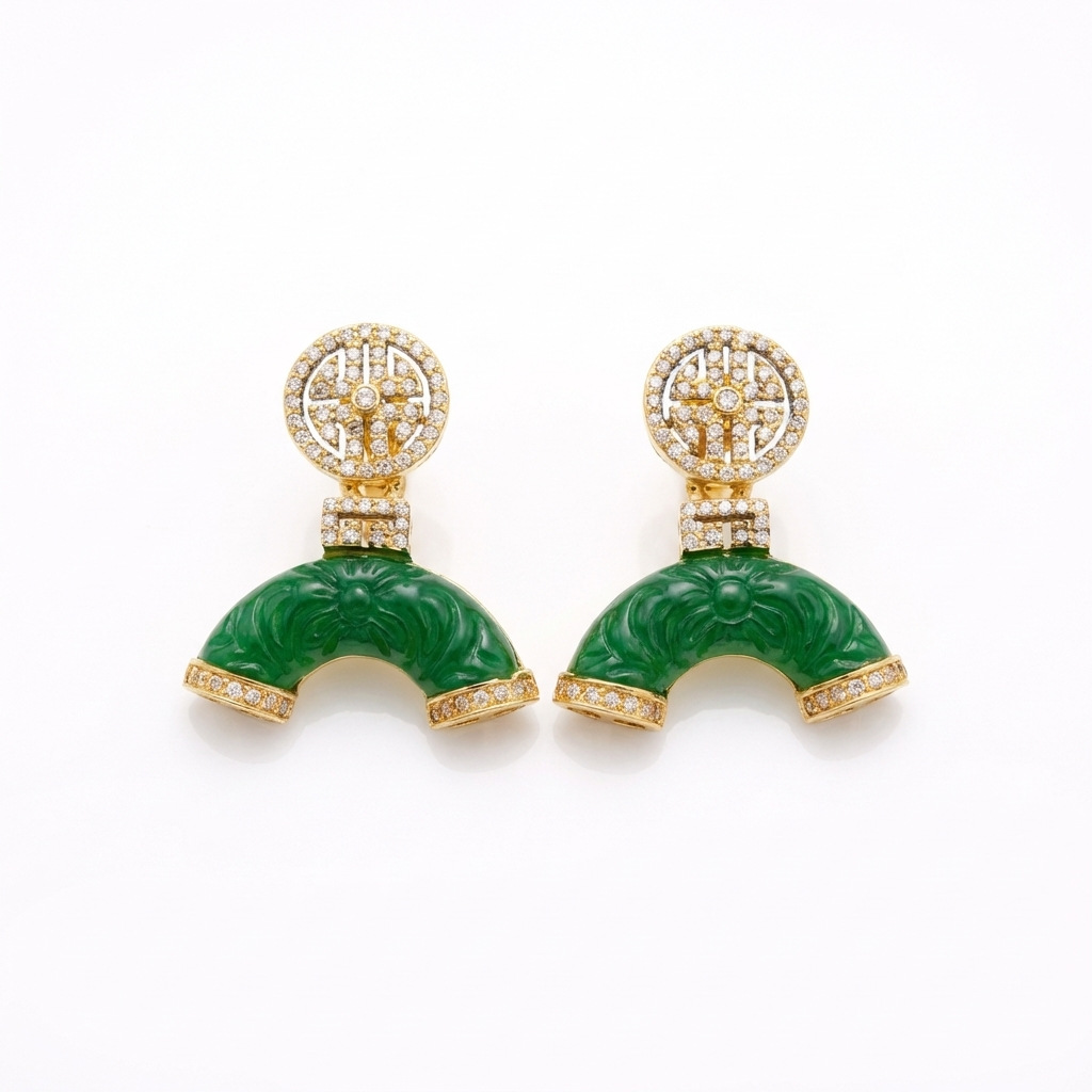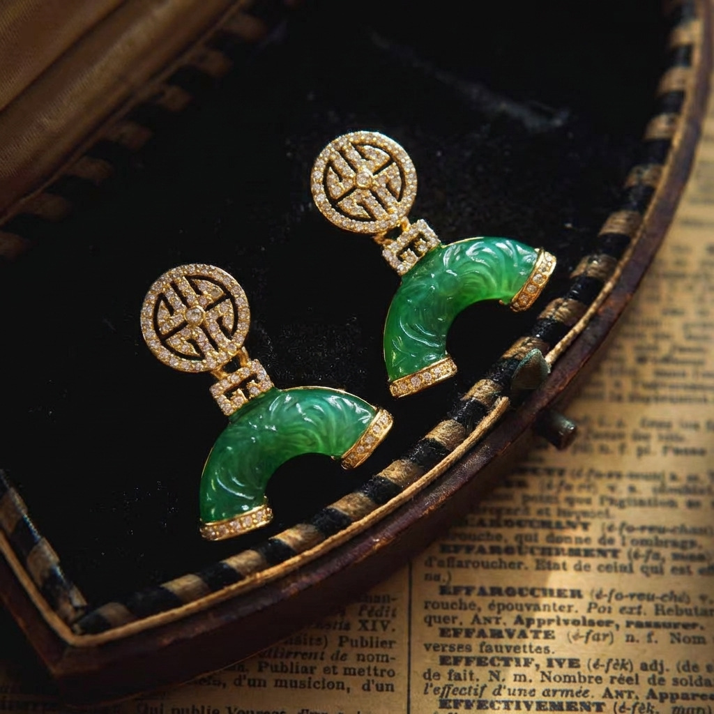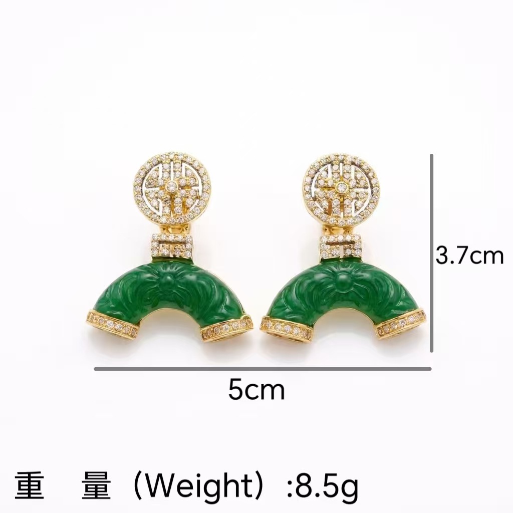qingdao zhonggu new chinese style green jeweled earrings light luxury fashion all-match high sense of national style graceful earrings ladies