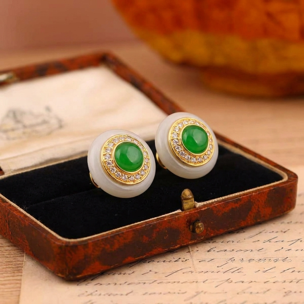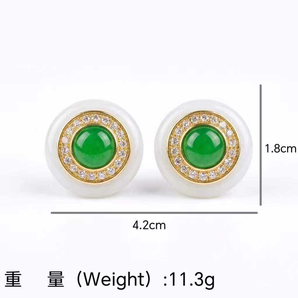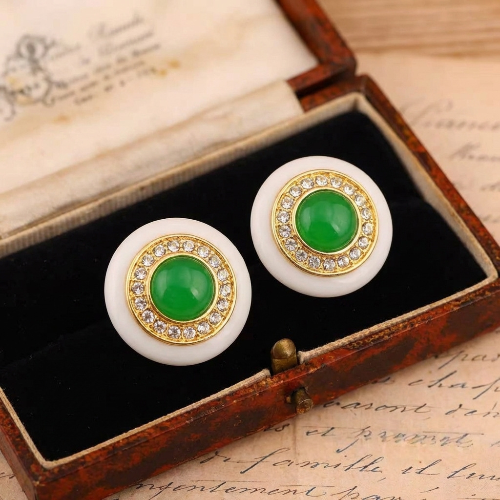 qingdao vintage court style fritillary emerald green round studs affordable luxury fashion high-end graceful earrings for women