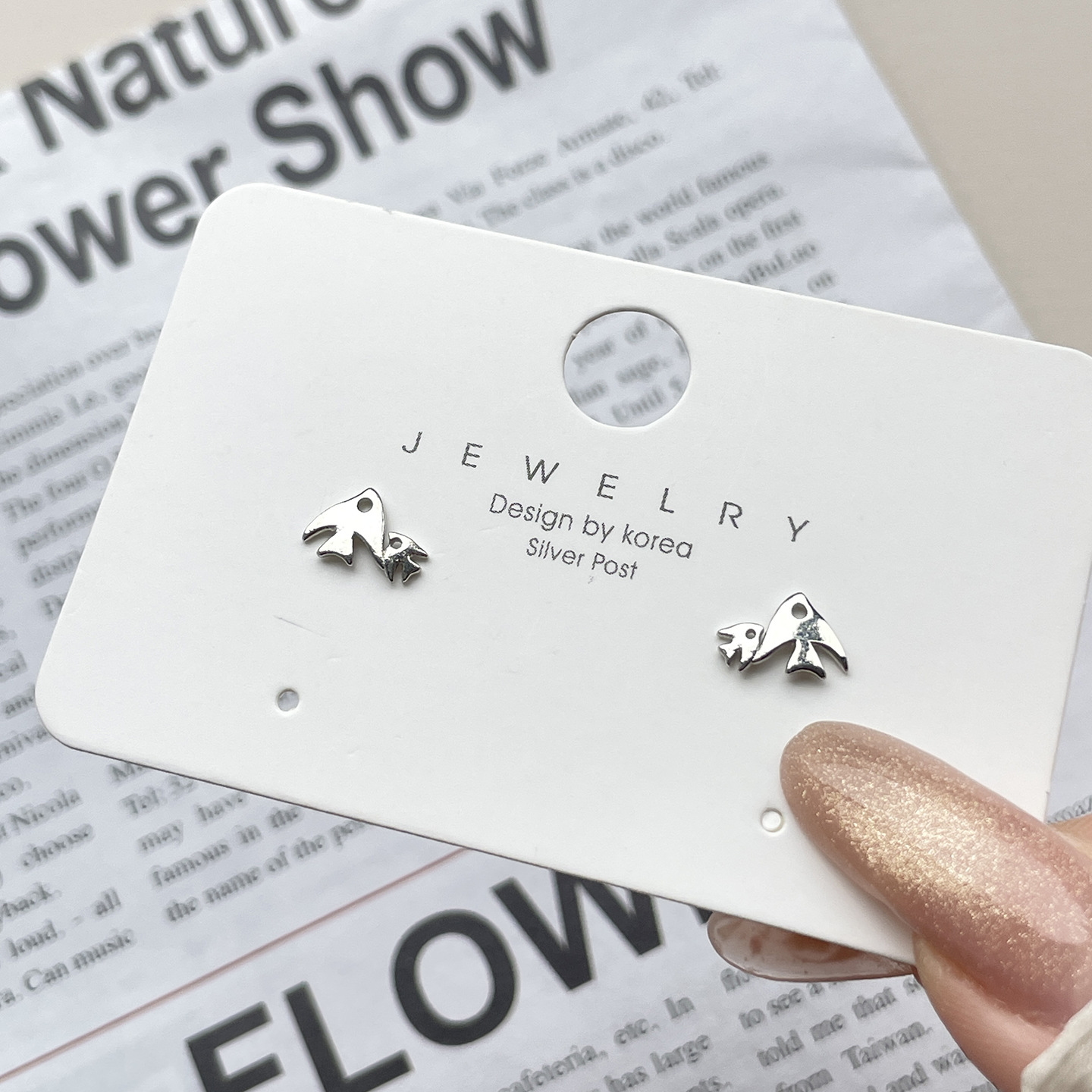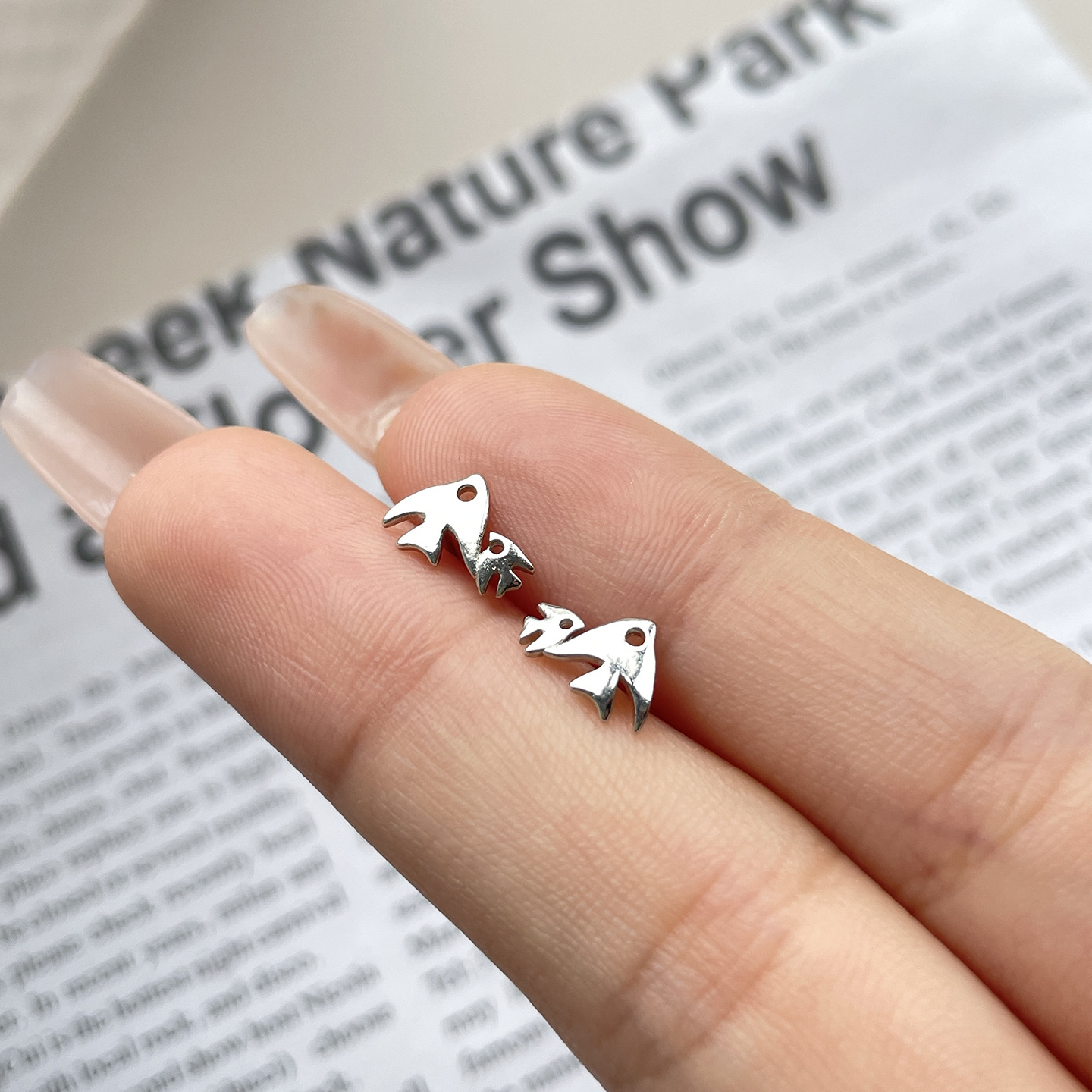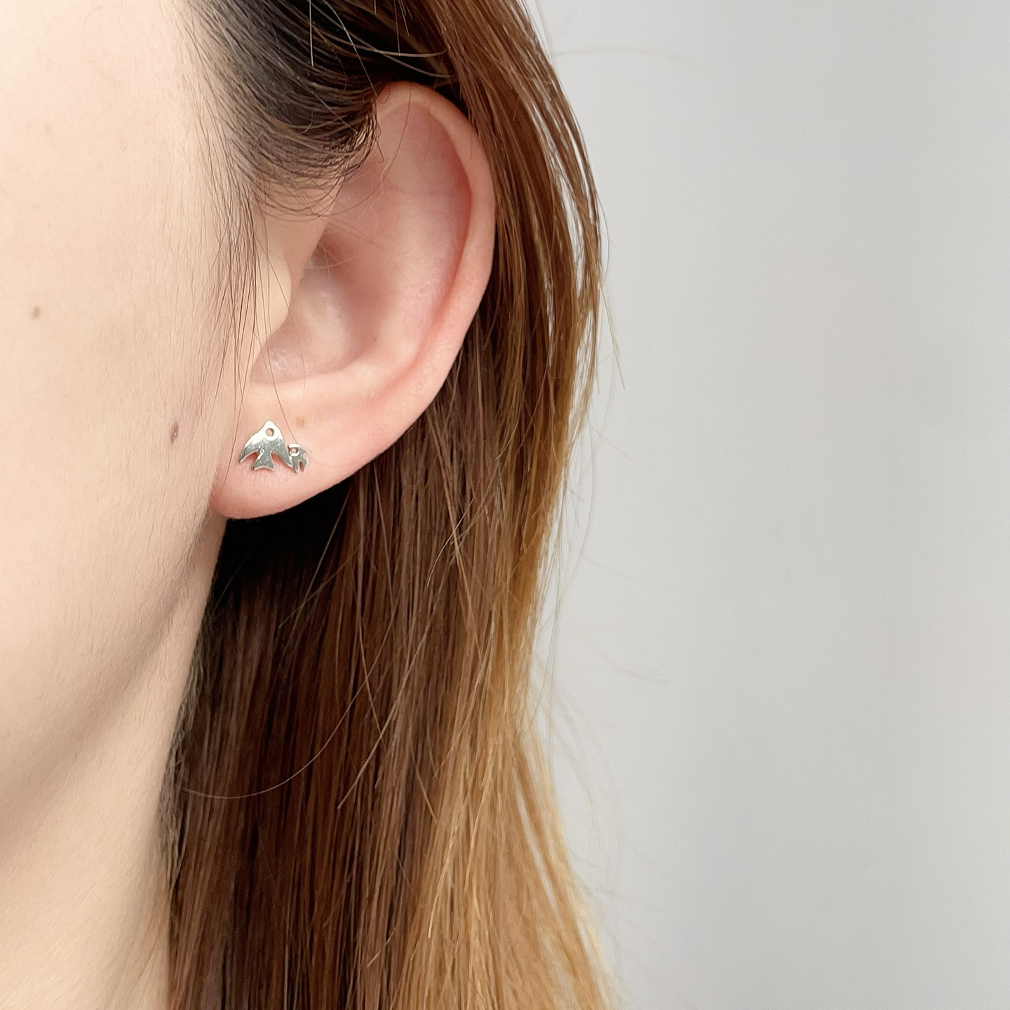 small fish stud earrings (copper plated white gold)