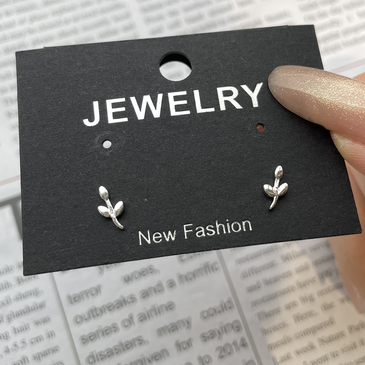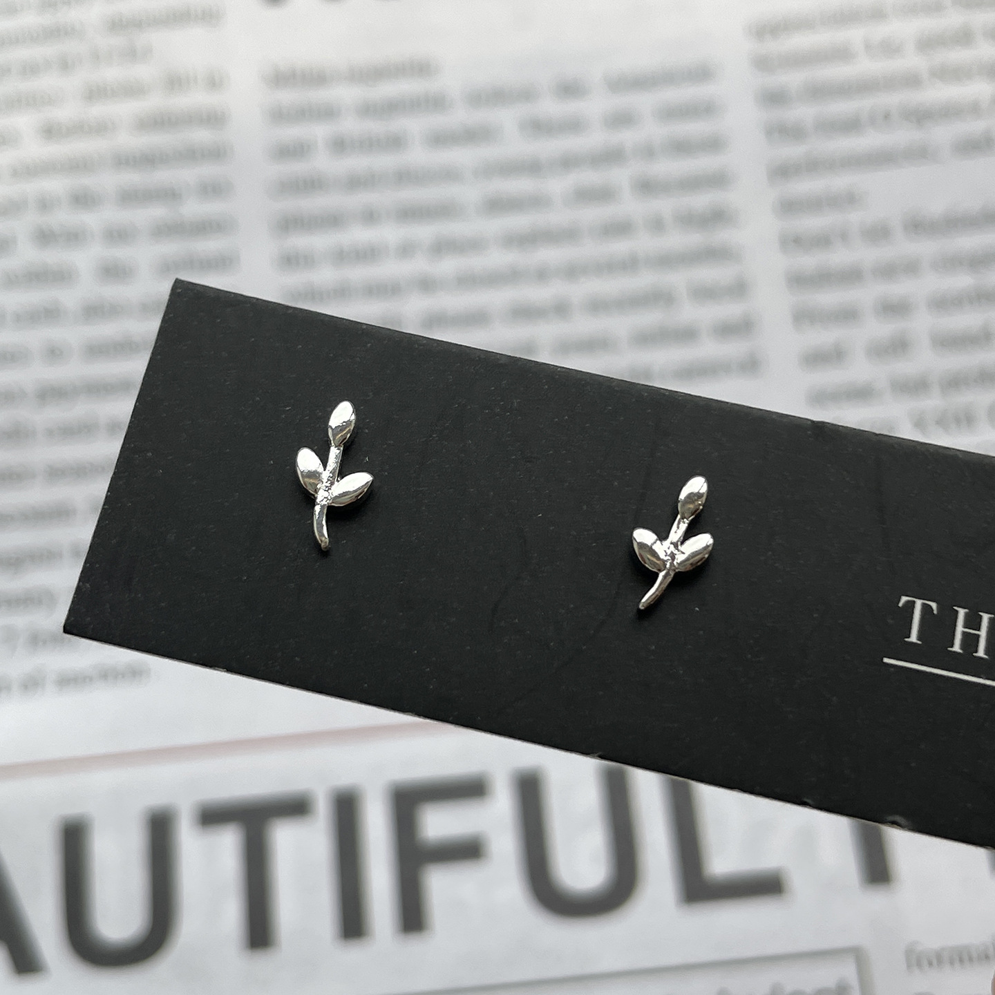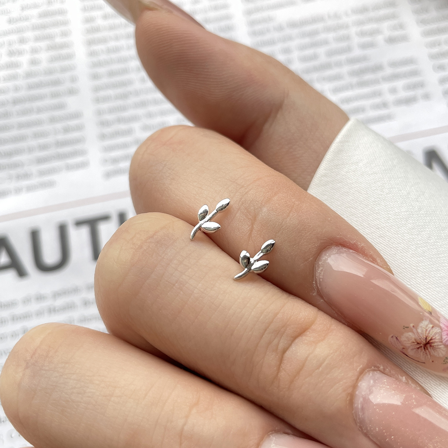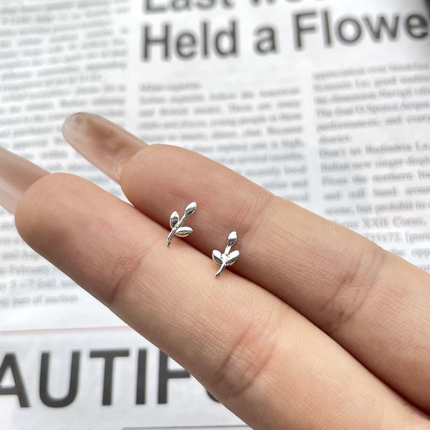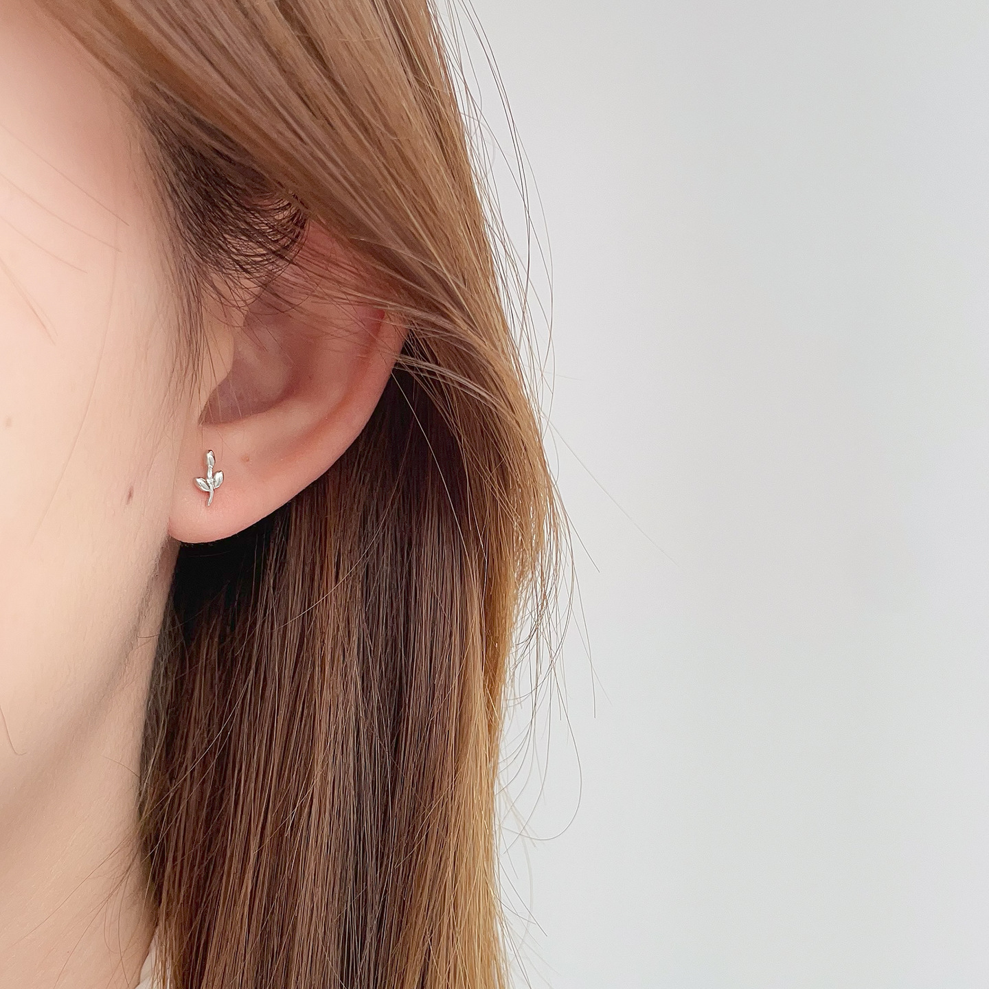 leaf-shapepd stud earrings (cooperized silver colors)