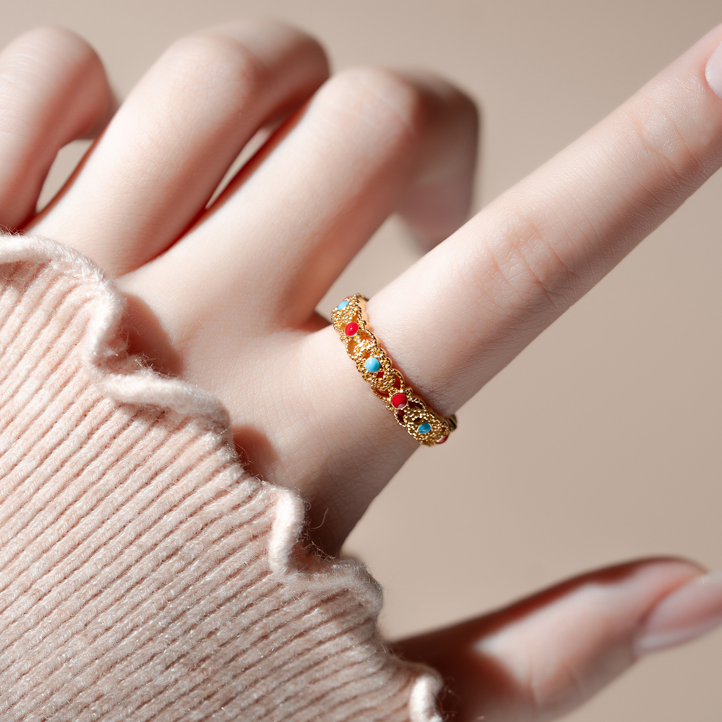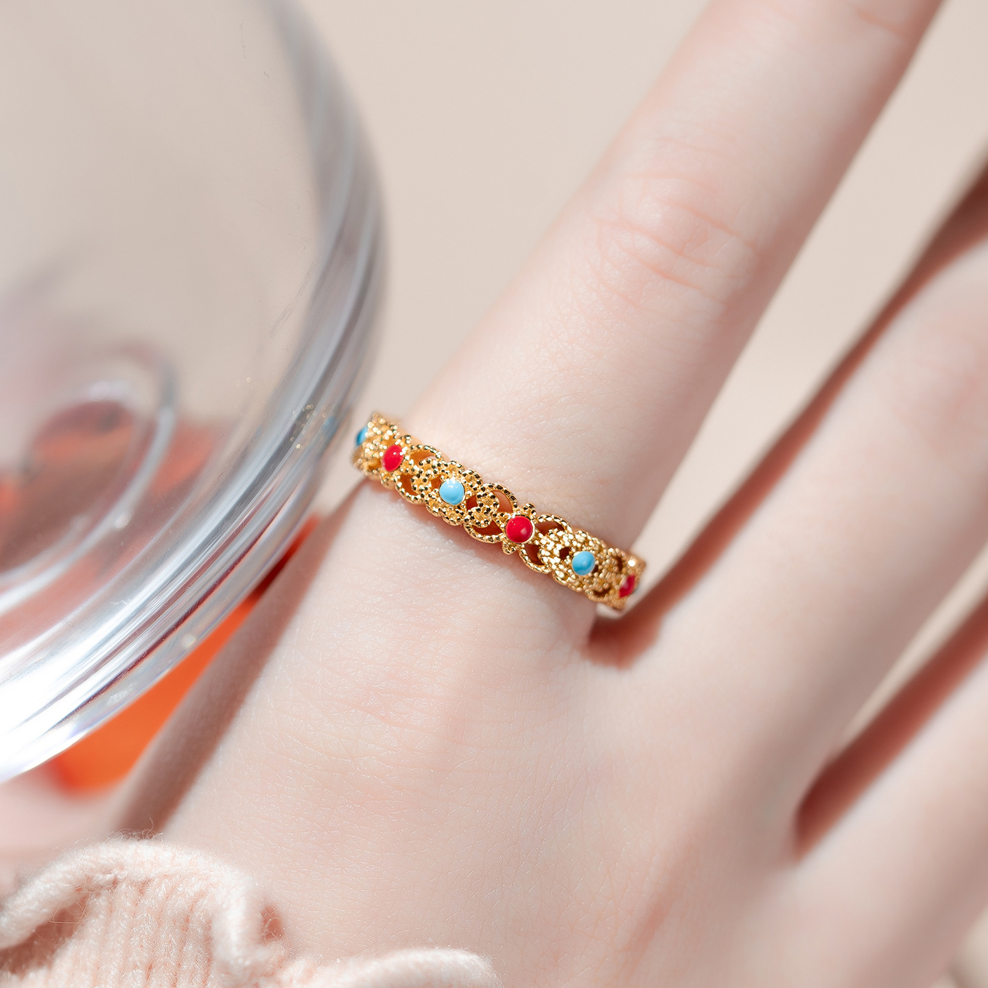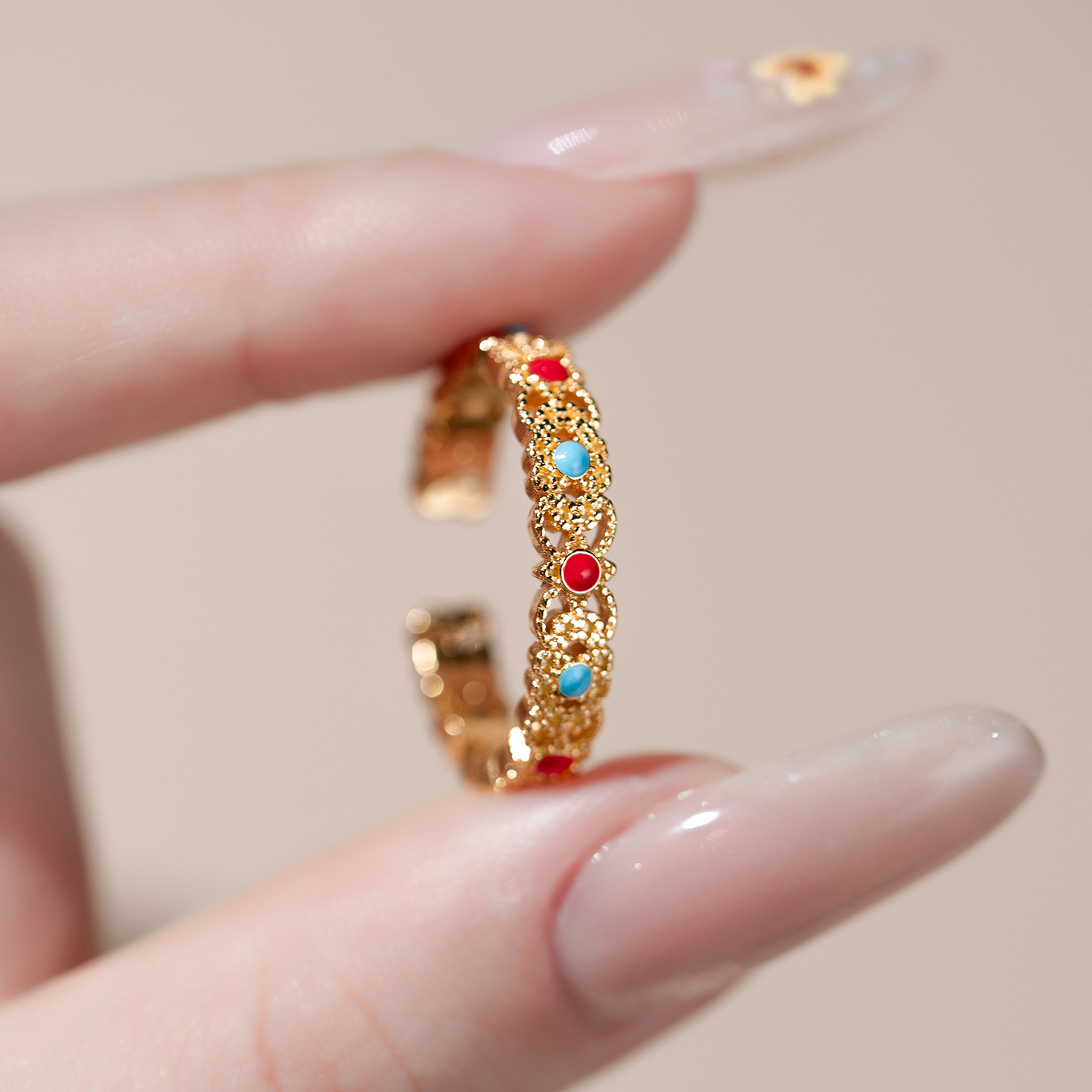 color: filigree ring (copper-plated gold colors)