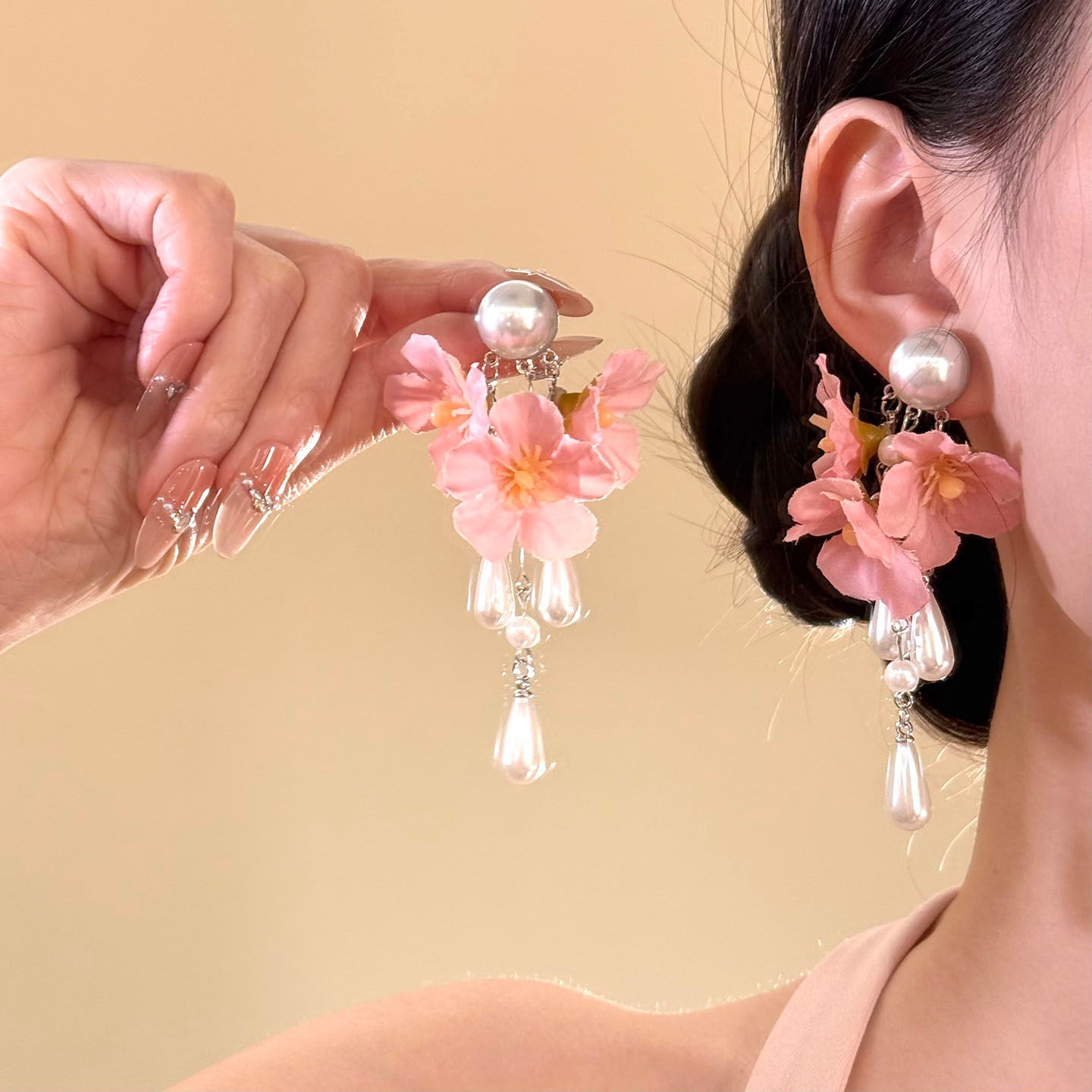 pink flower earrings