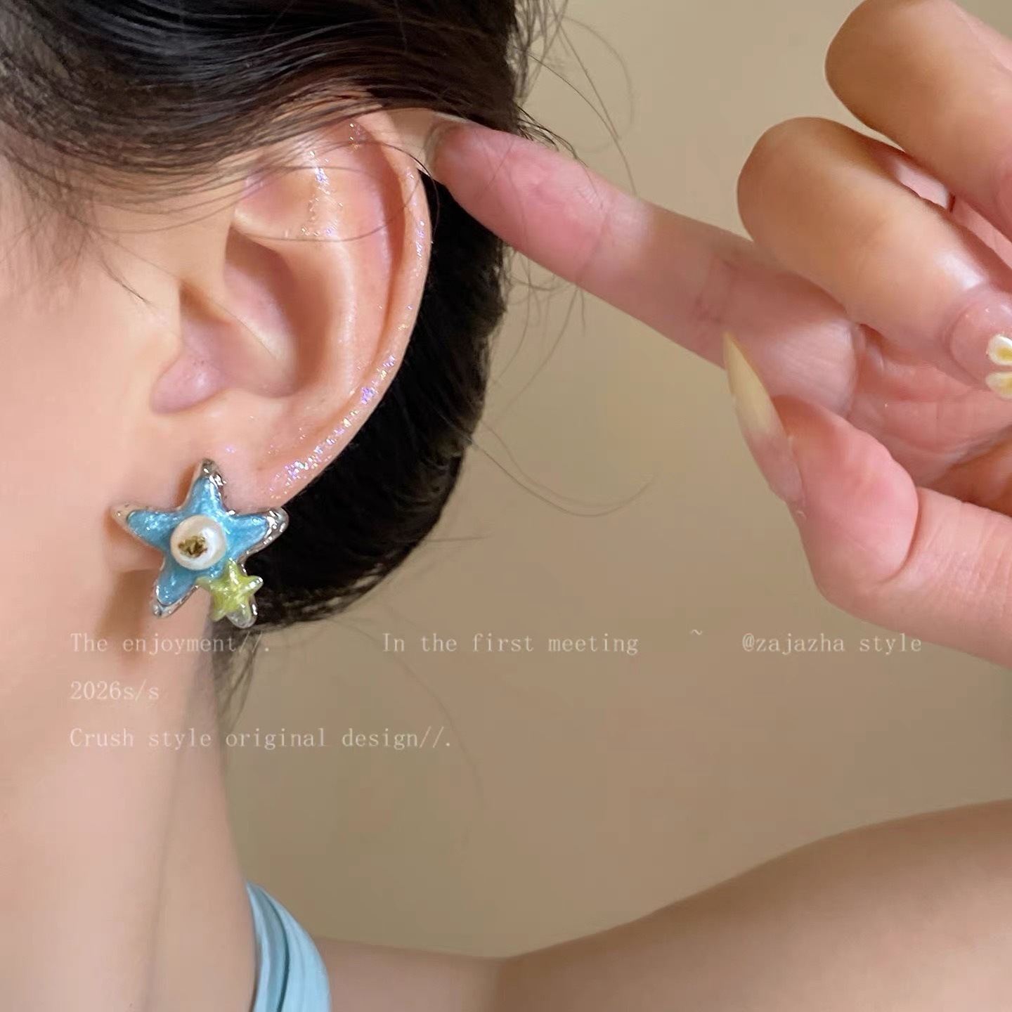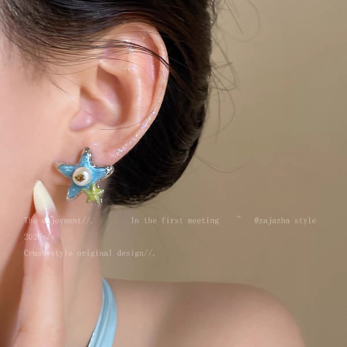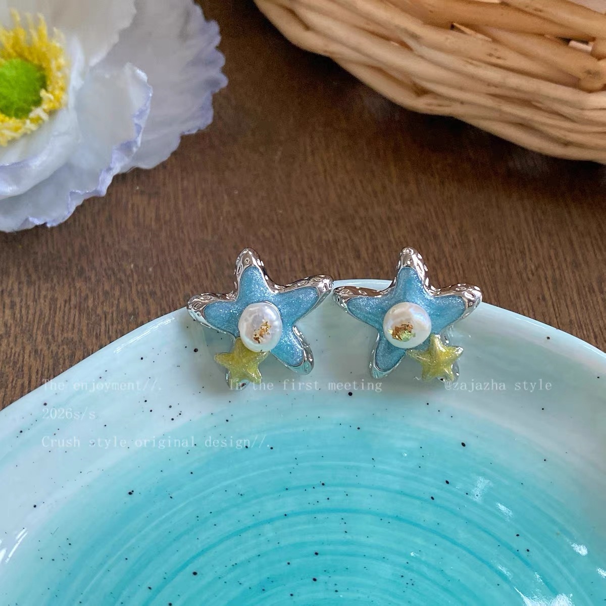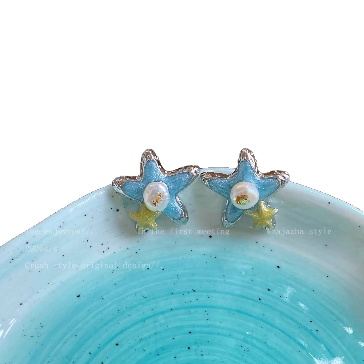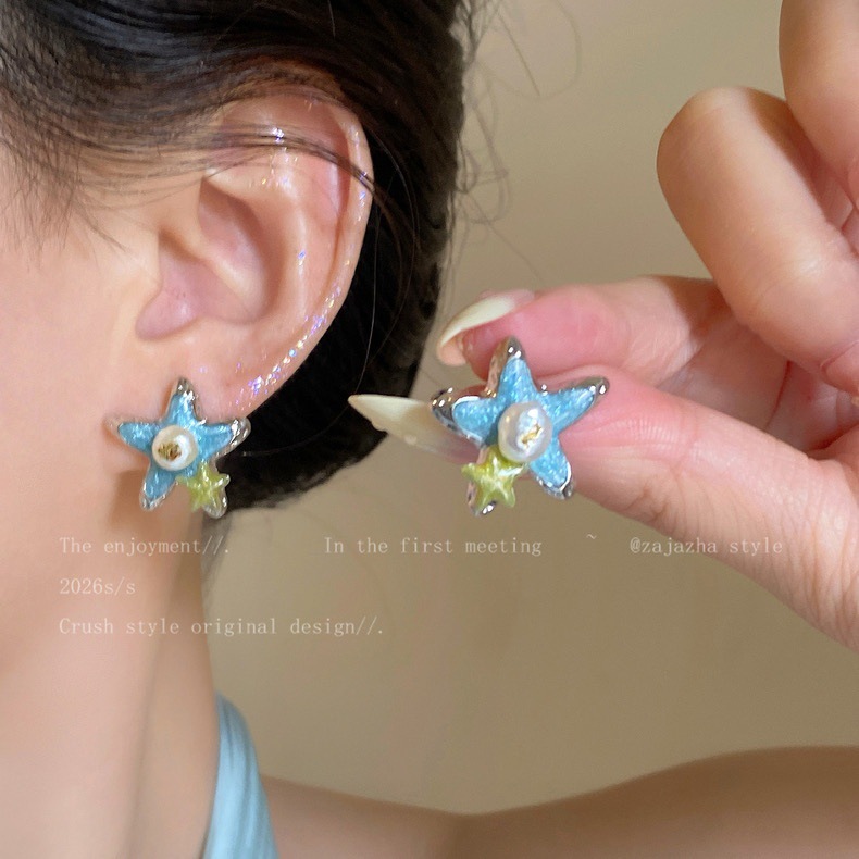 blue starfish pearl earrings