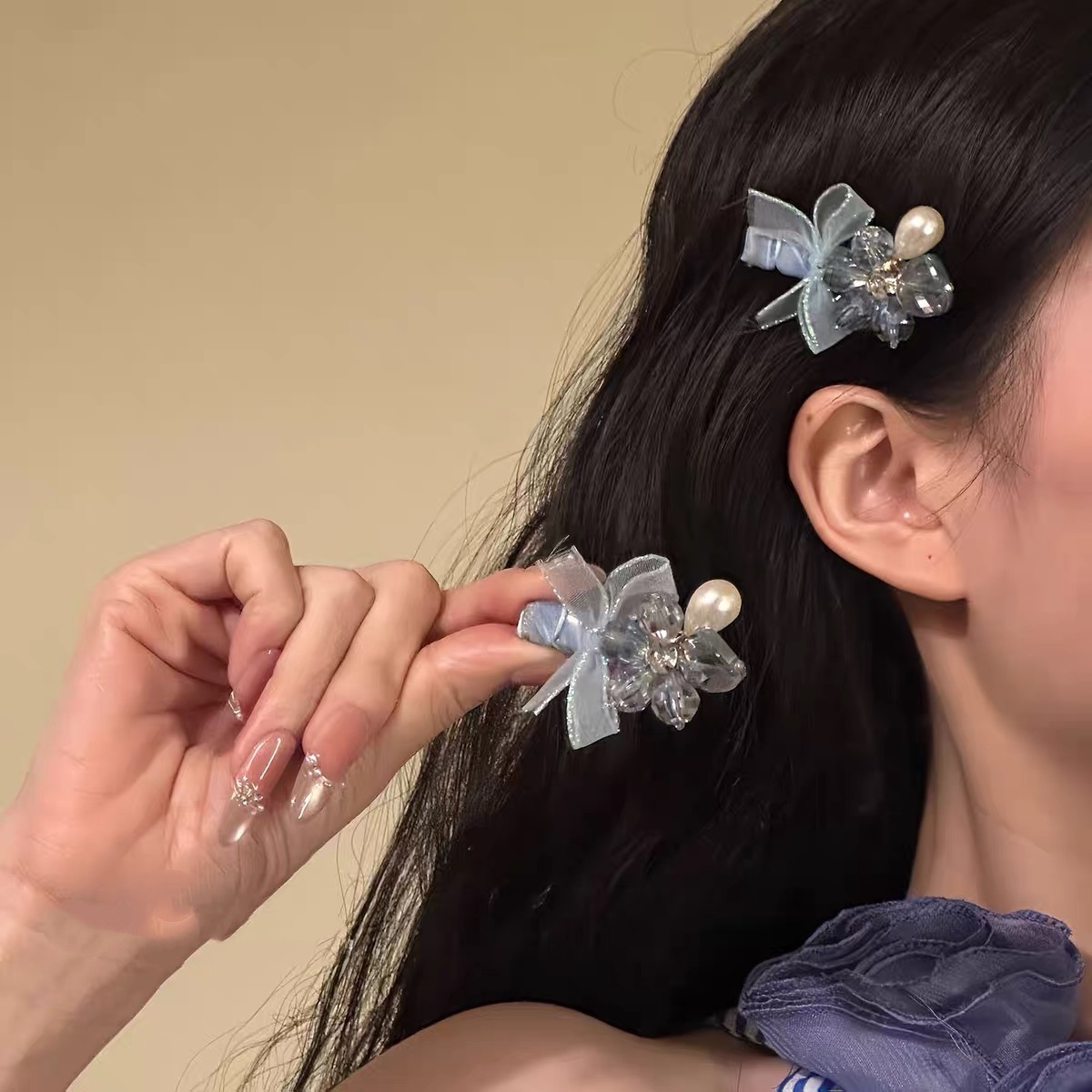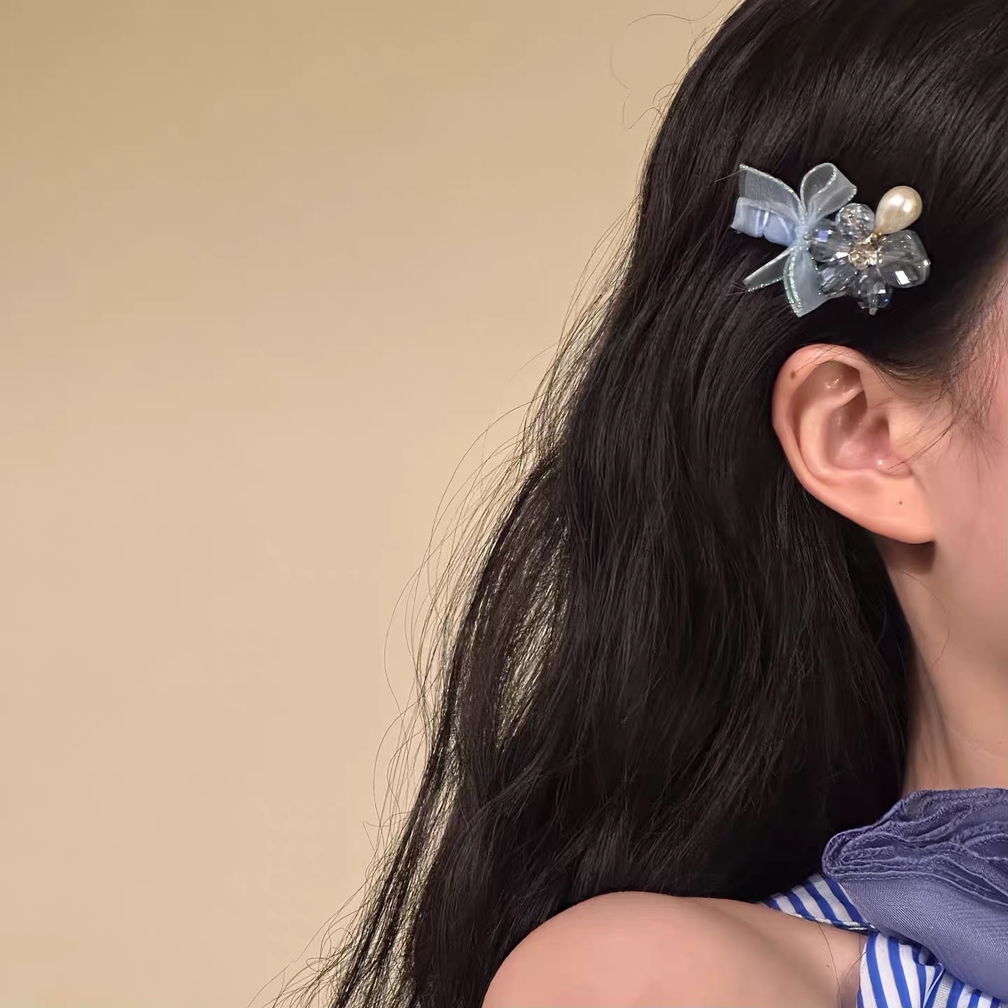 blue bow barrettes