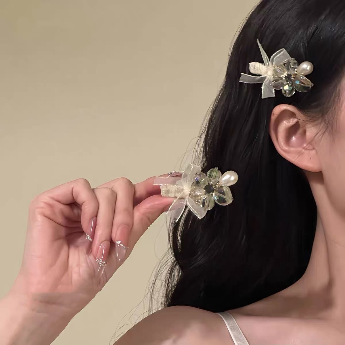 white bow barrettes