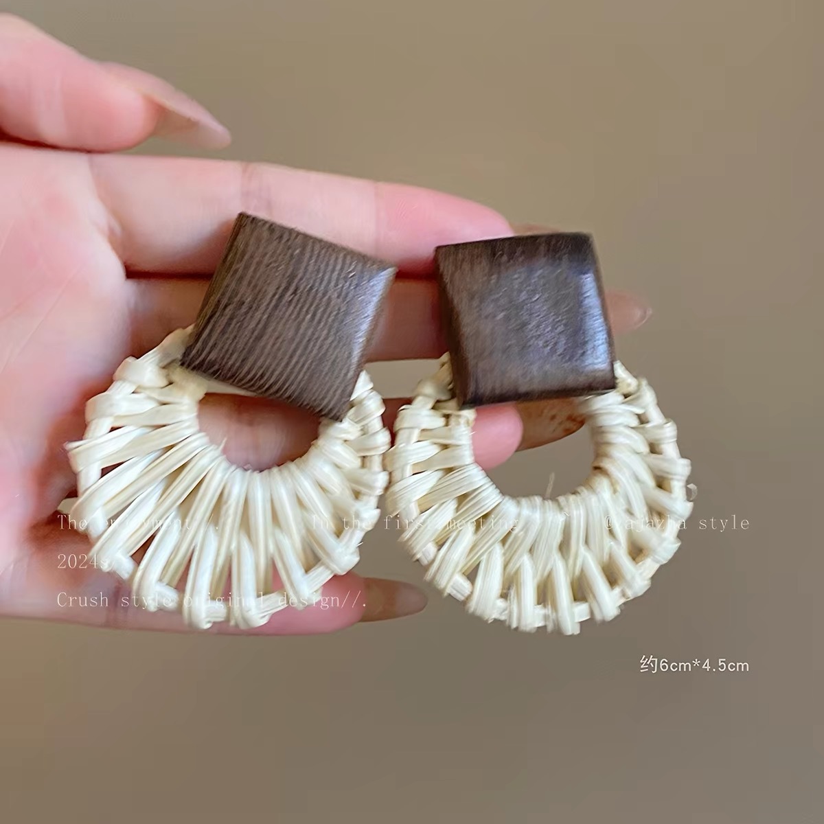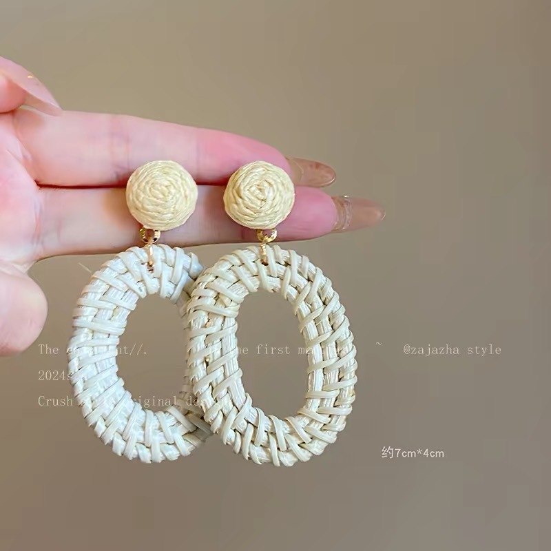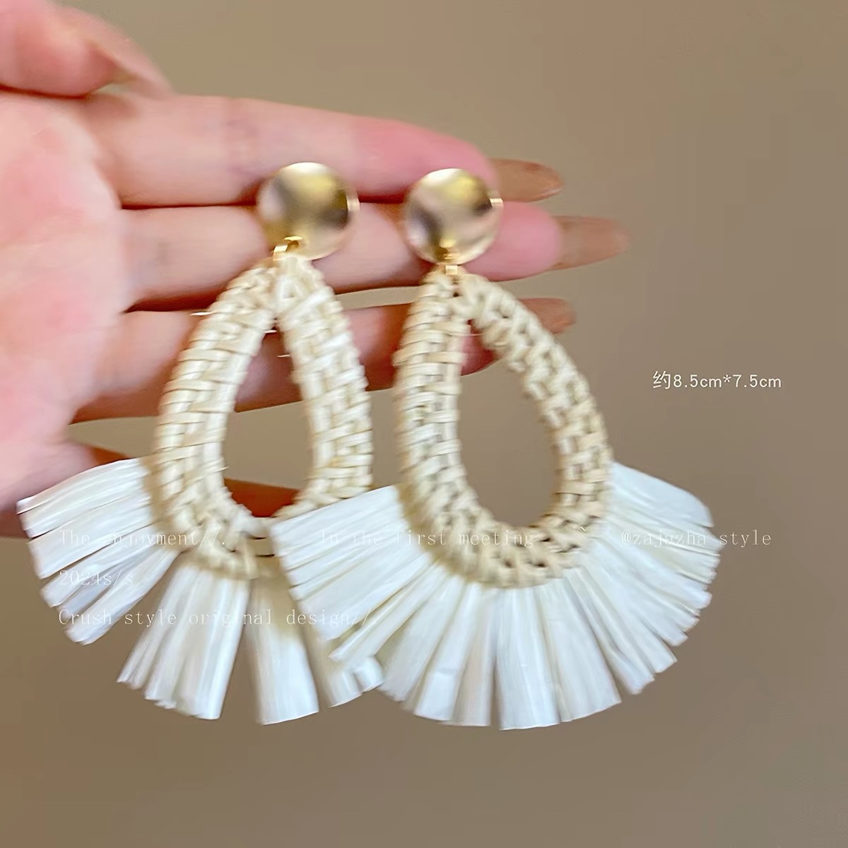 7# beige oval earrings