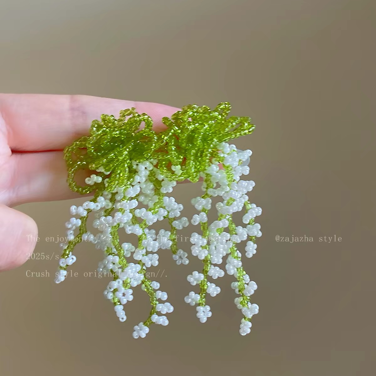 12# green flower beaded earrings