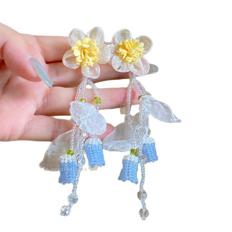 4 yellow flower tassel earrings