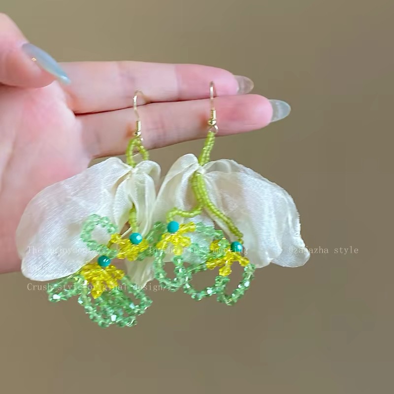 1# green flower earrings