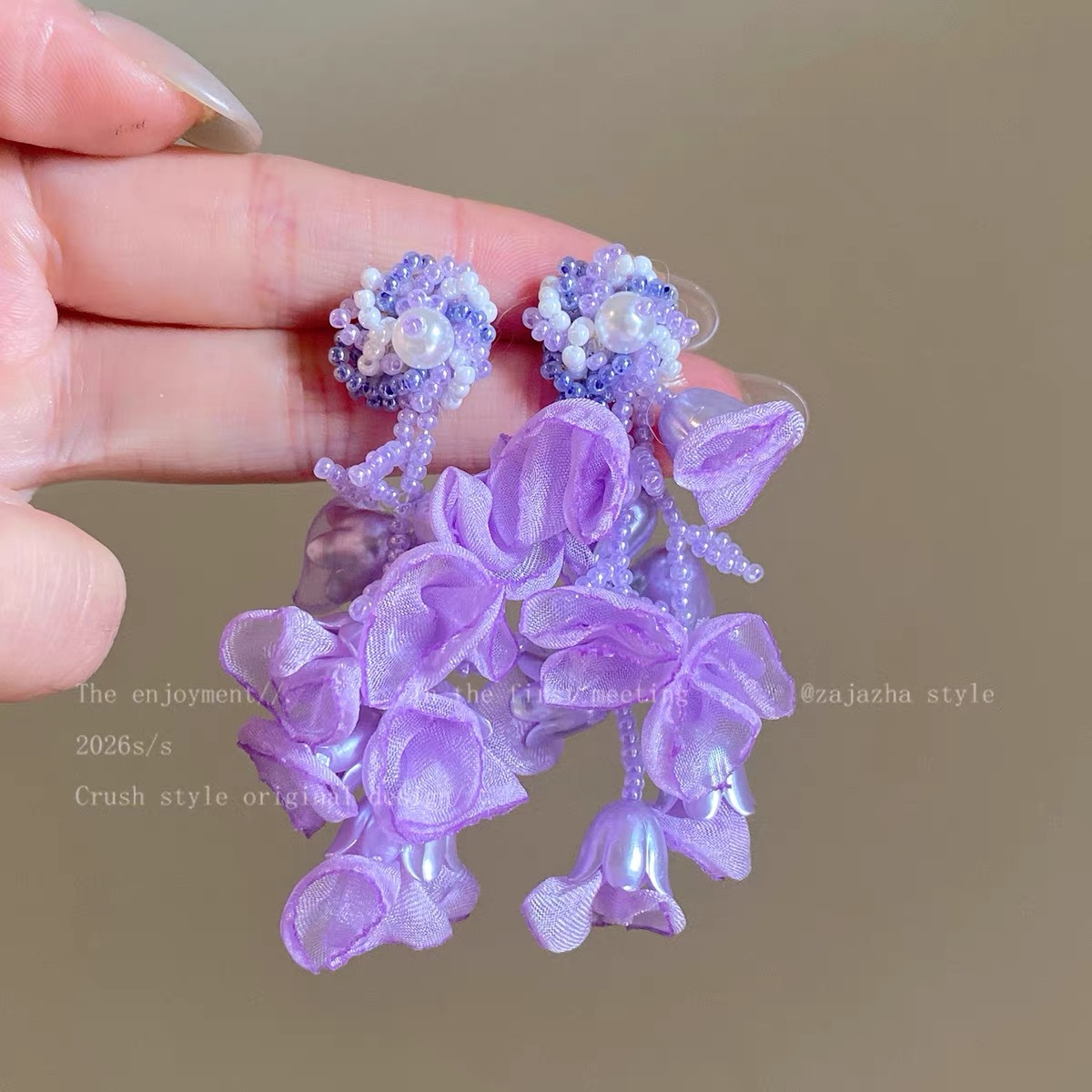 19# purple flower pearl earrings