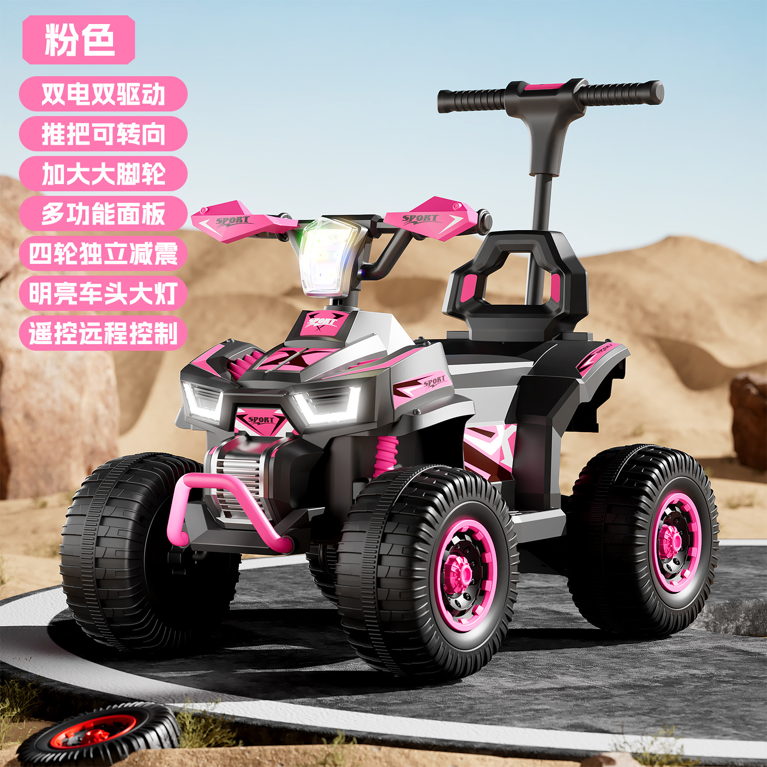ddw-pink + push bar + remote control + 6v4.5a battery + dual motor dual drive
