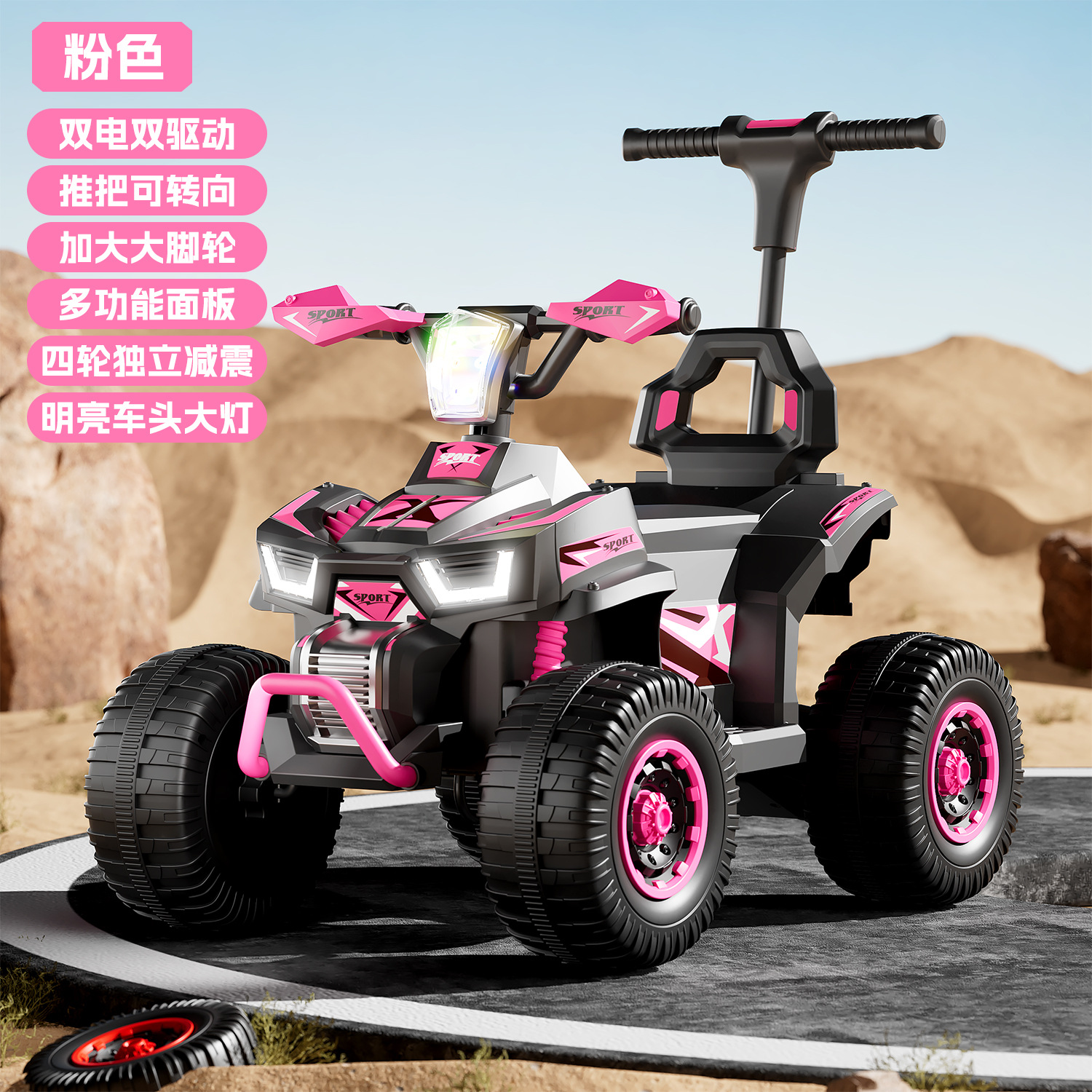 ddw-pink + push bar + 6v4.5a battery + dual motor dual drive