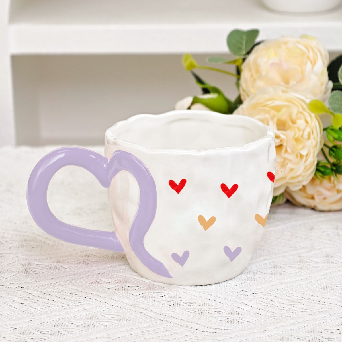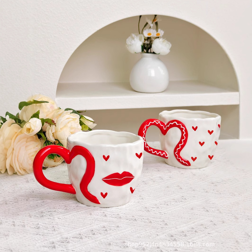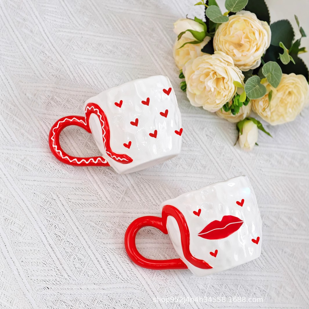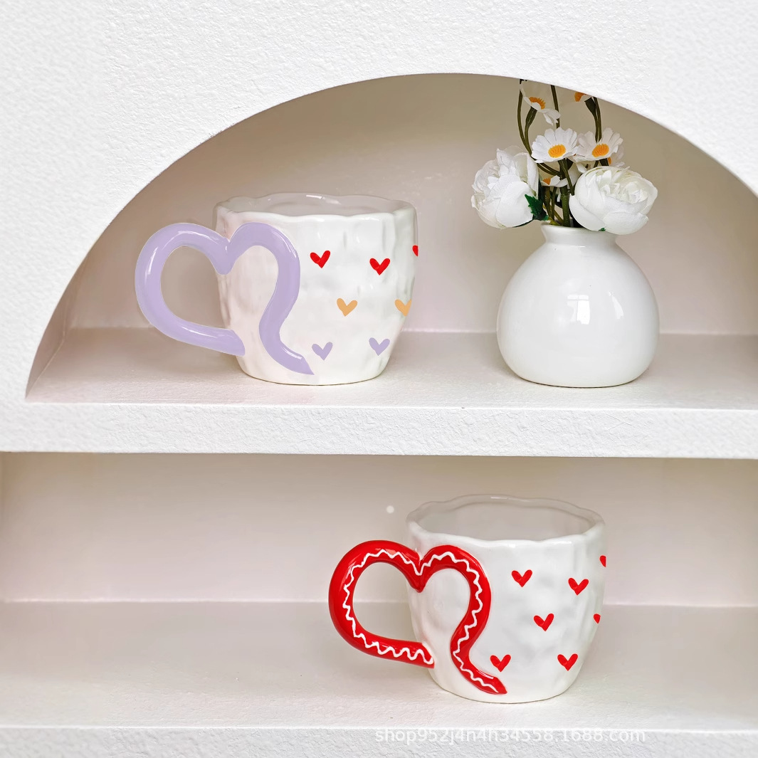 ceramic cup underglaze creative ins wind net red hand pinch heart-shaped handle hand painted love coffee mug