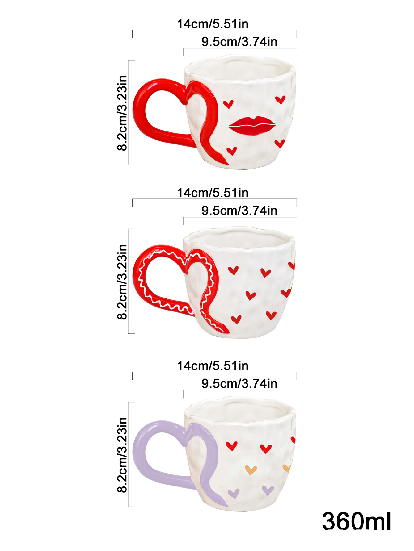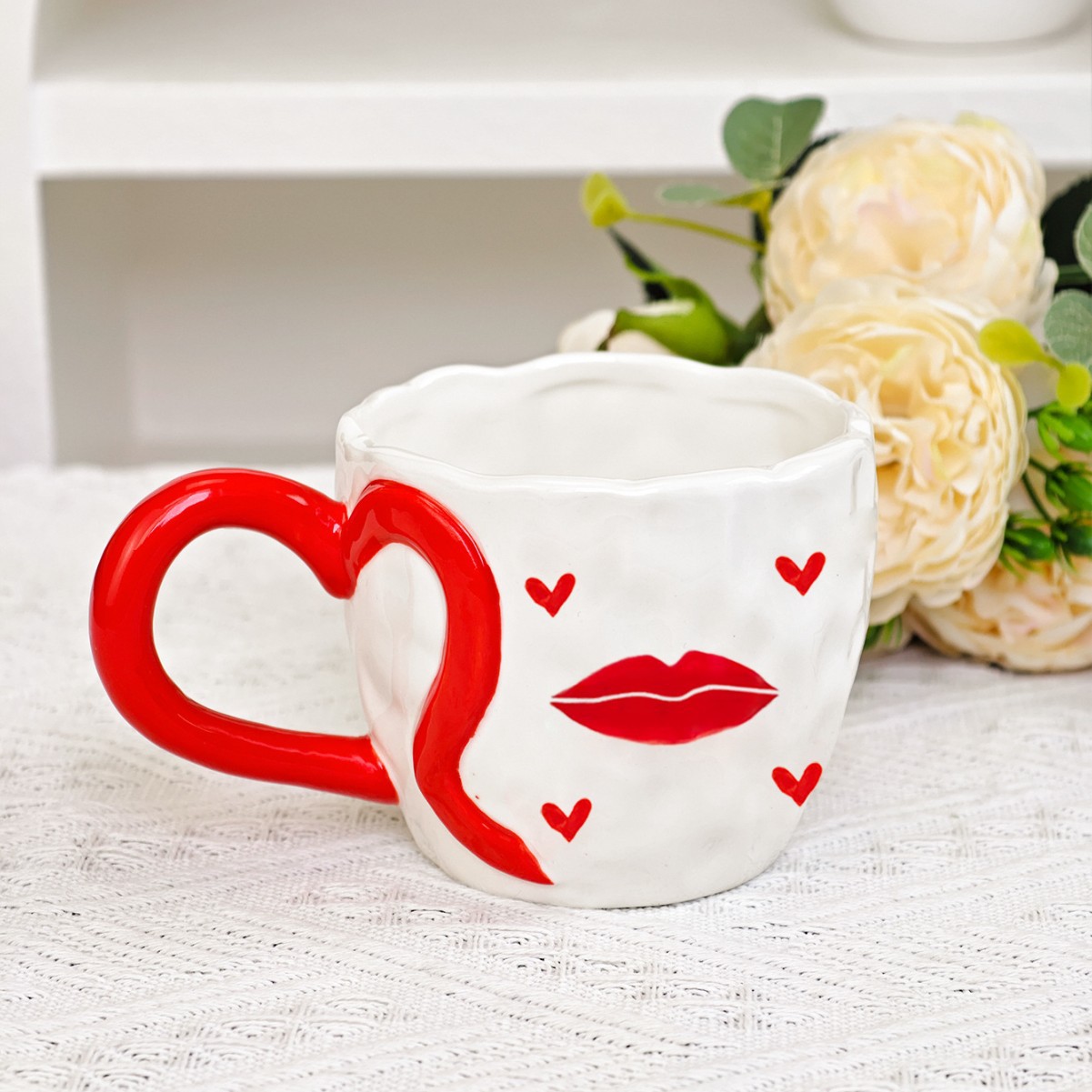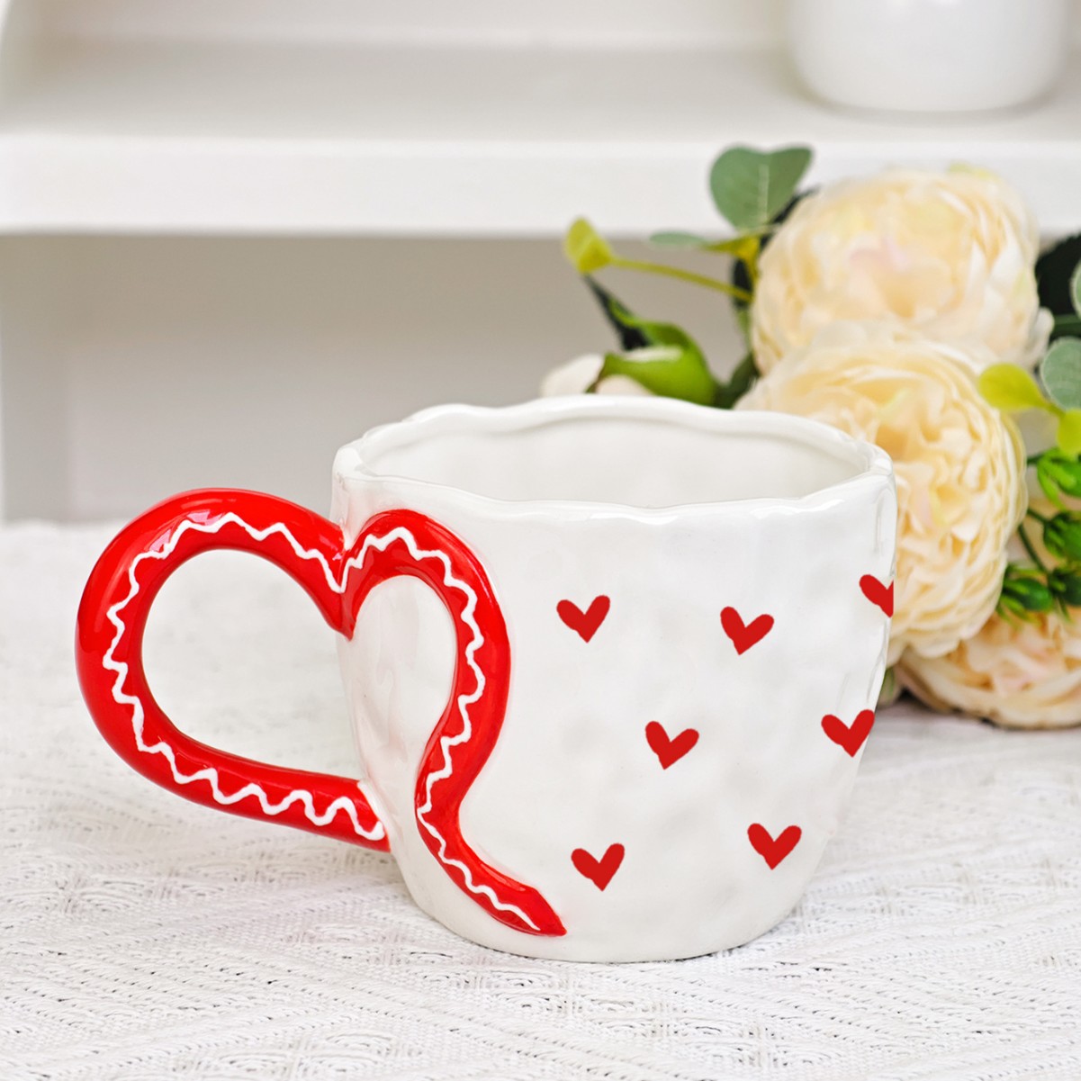ceramic cup underglaze creative ins wind net red hand pinch heart-shaped handle hand painted love coffee mug