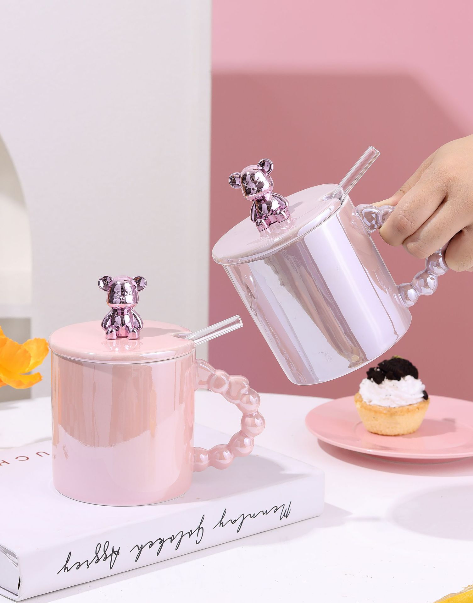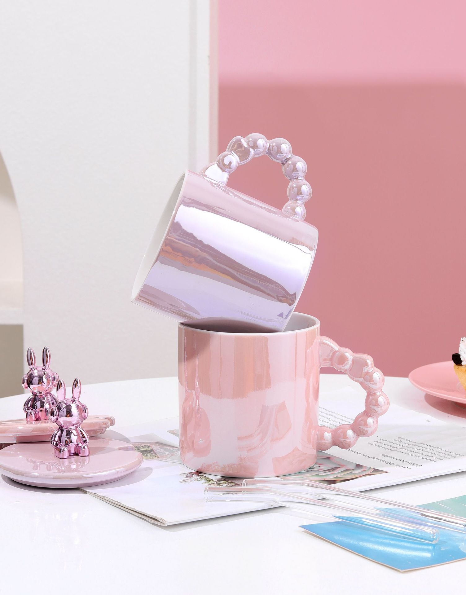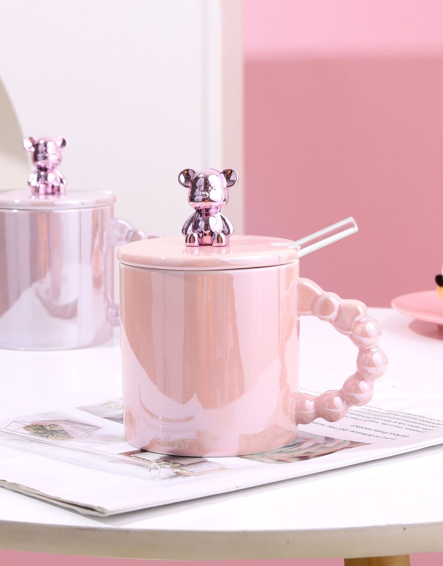 ceramic cup stamped good-looking mug cute couple coffee mug cartoon drinking cup summer girl pearl glaze