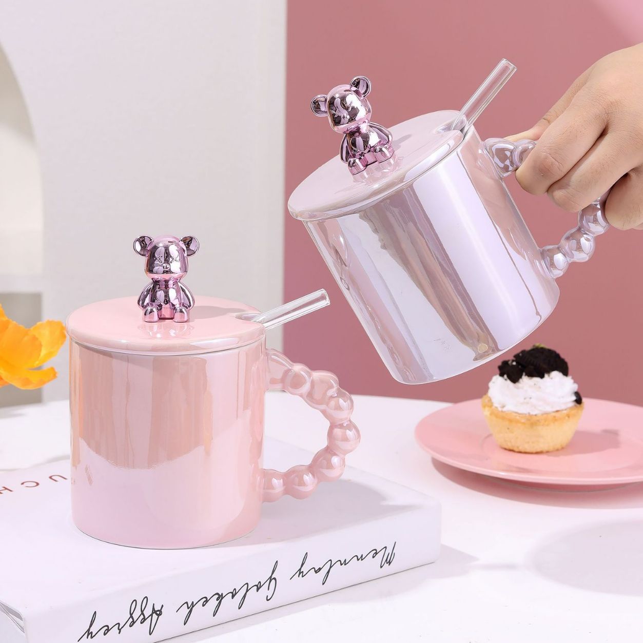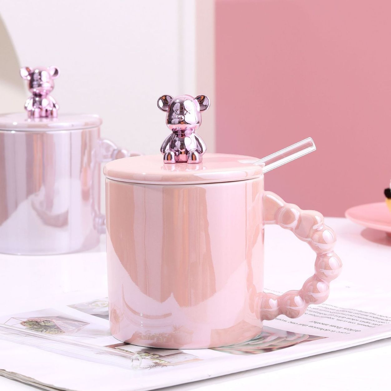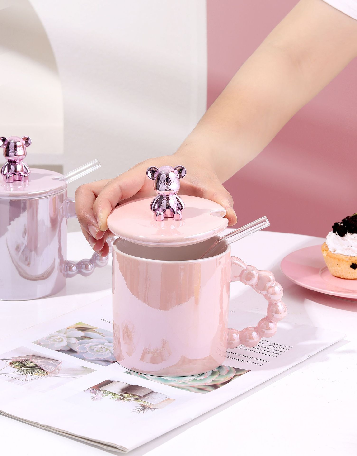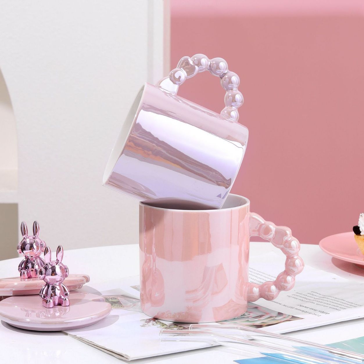 ceramic cup stamped good-looking mug cute couple coffee mug cartoon drinking cup summer girl pearl glaze