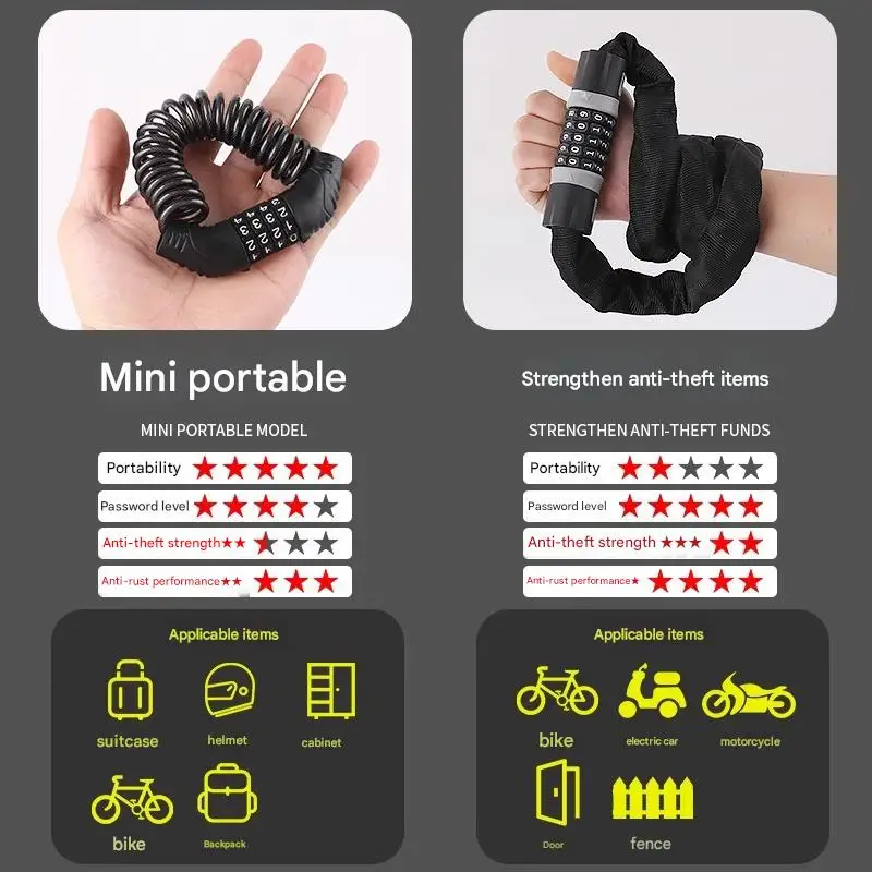 Portable Password Lock for Bicycles Motorcycles Electric Vehicles Mini Chain Lock for Cycling Equipment Anti-Theft Accessory
