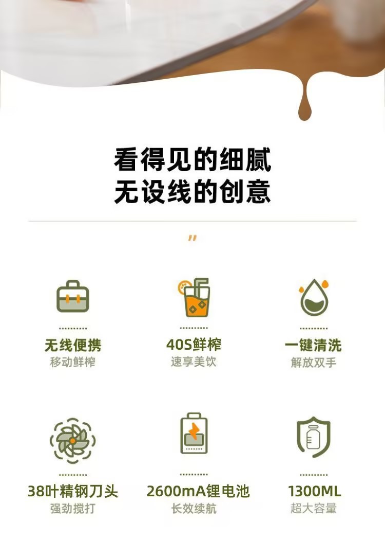 beige [single cup and double cover] 38-leaf stainless steel cutter head 800ml