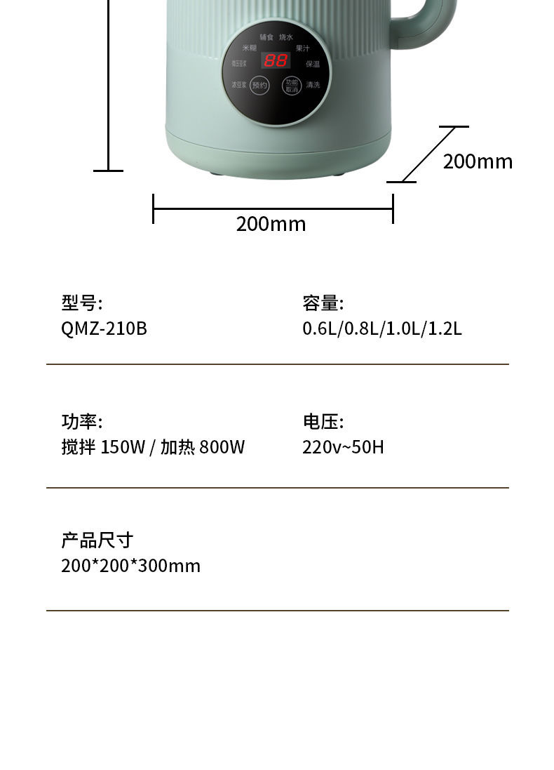 soybean milk machine functions: fruit and vegetable, dry beans, wet soybeans, rice cereal, grain, corn juice