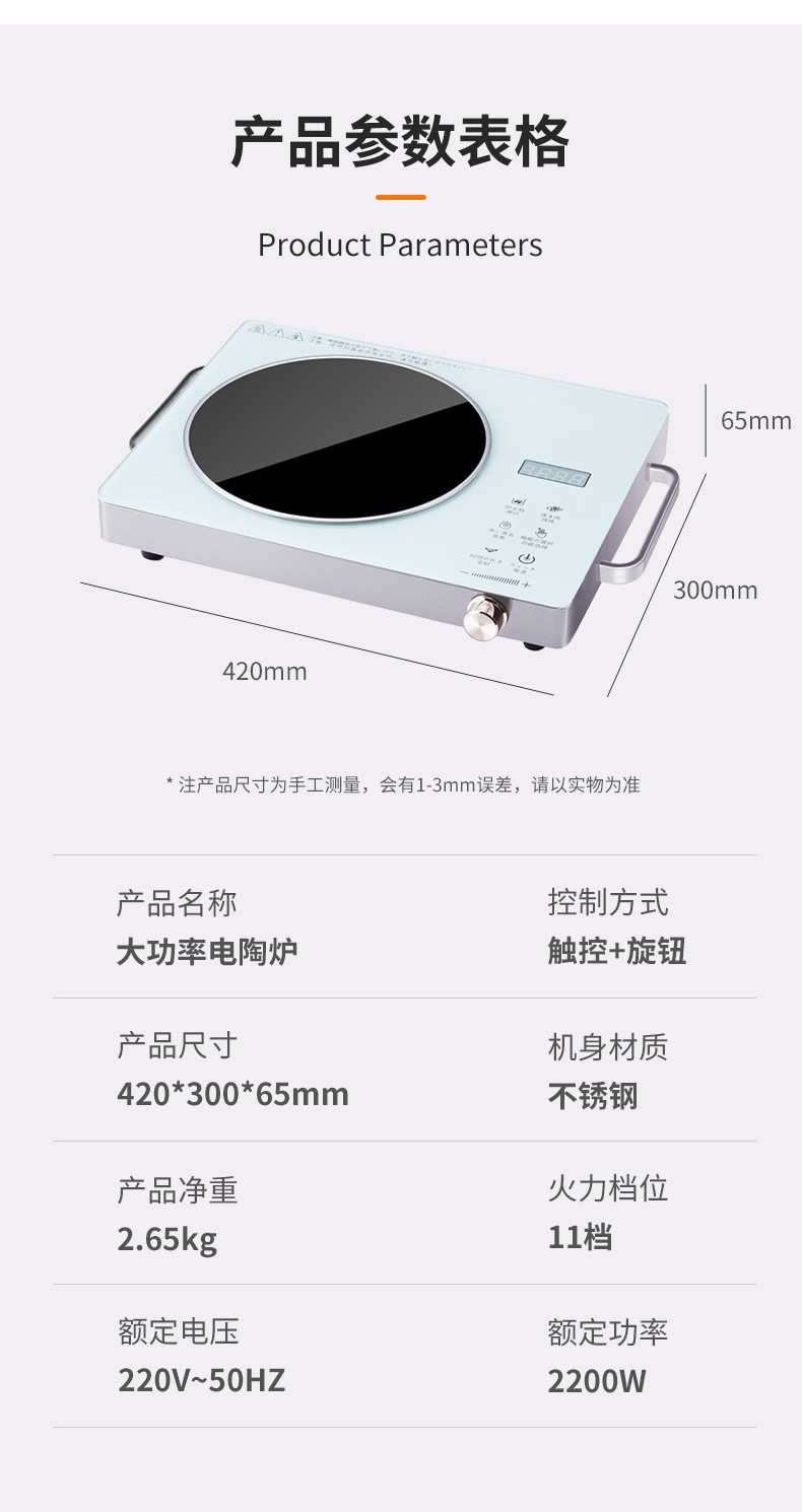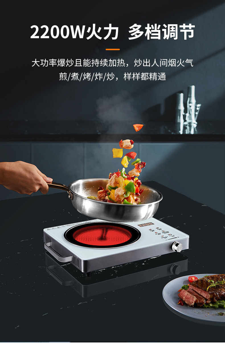 electric ceramic cooktop, household silent high-power tabletop all-in-one stir-fry 2200w electric ceramic stove, us standard, cross-border sales