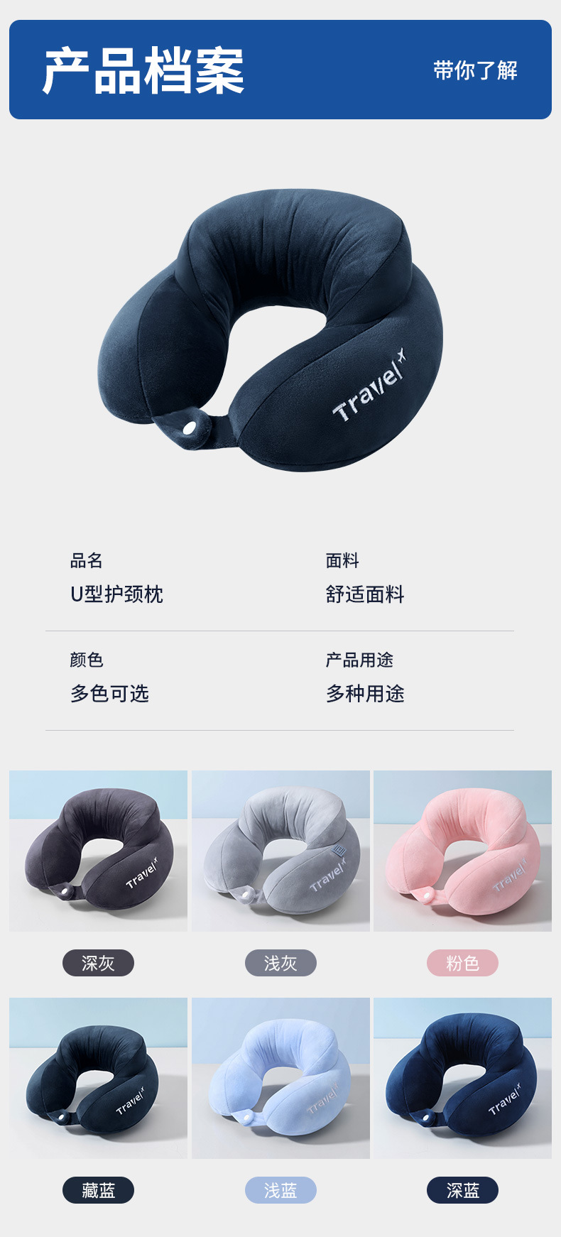 fifth-generation comfort sky blue u-shaped pillow