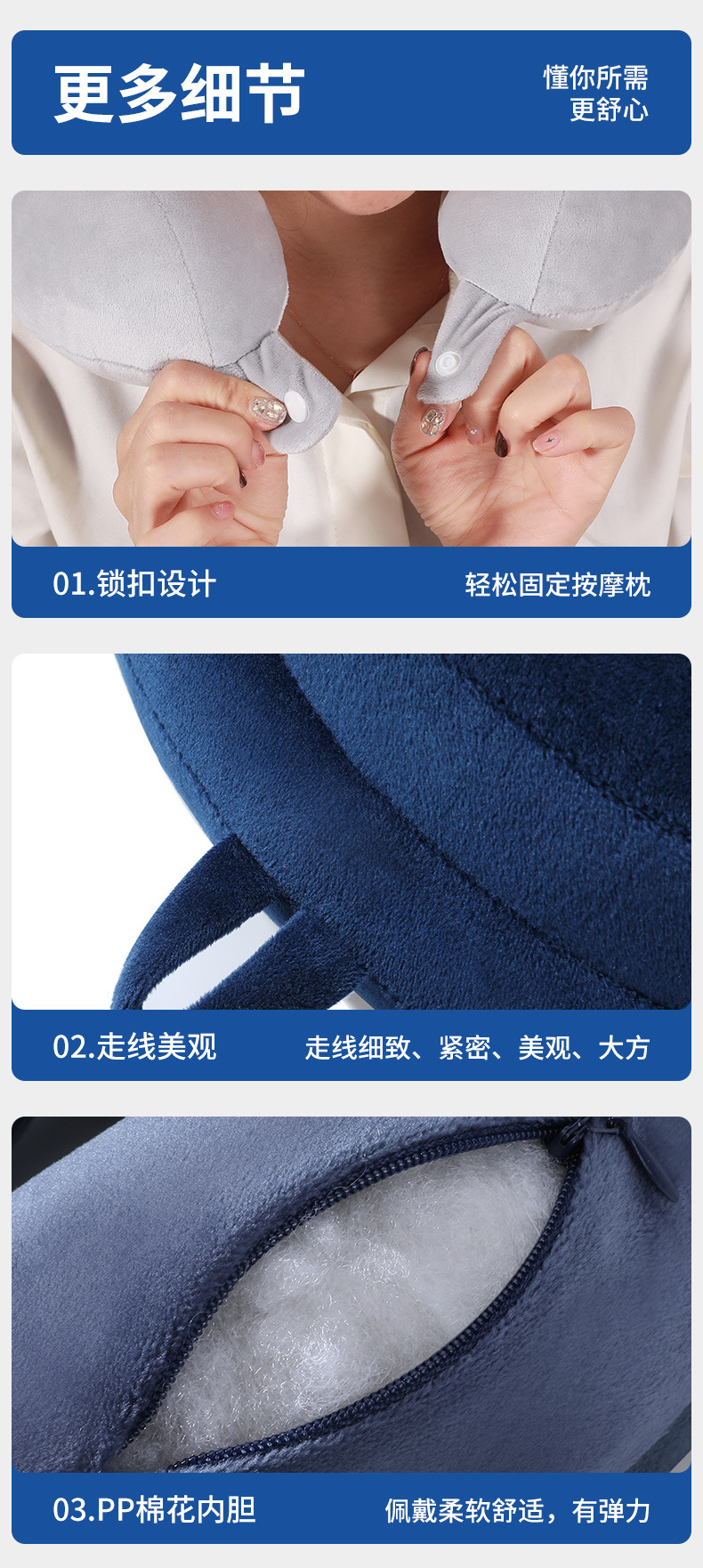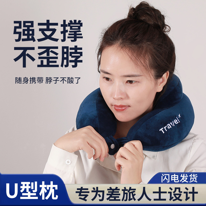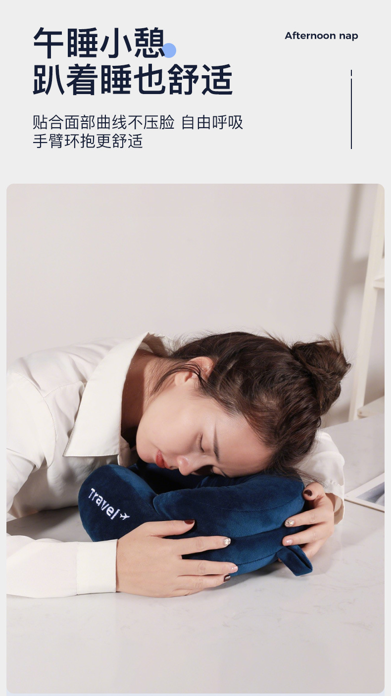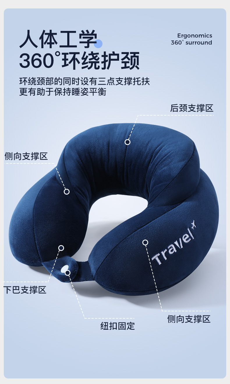 fifth-generation comfort navy blue u-shaped pillow