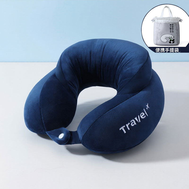 fifth-generation comfortable navy blue u-shaped pillow + portable handbag