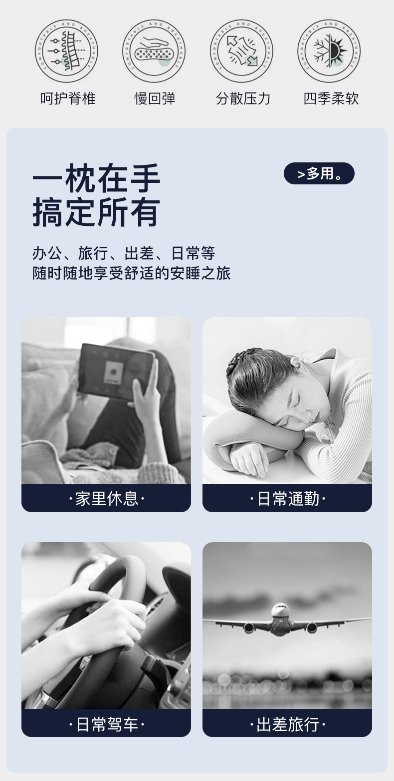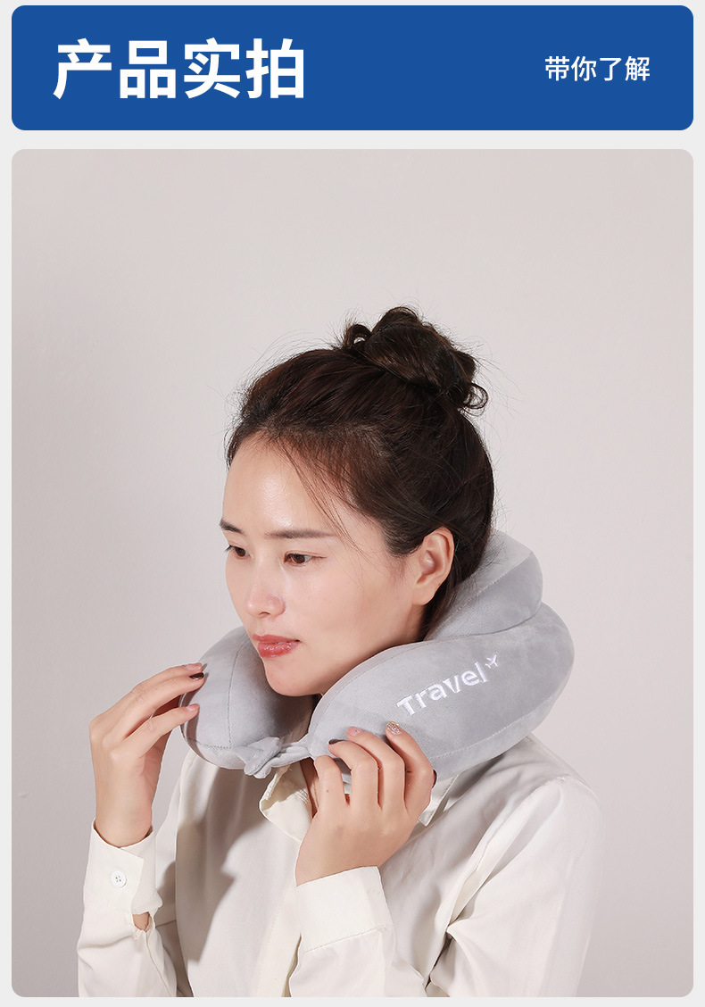 fifth-generation comfortable light gray u-shaped pillow + portable handbag
