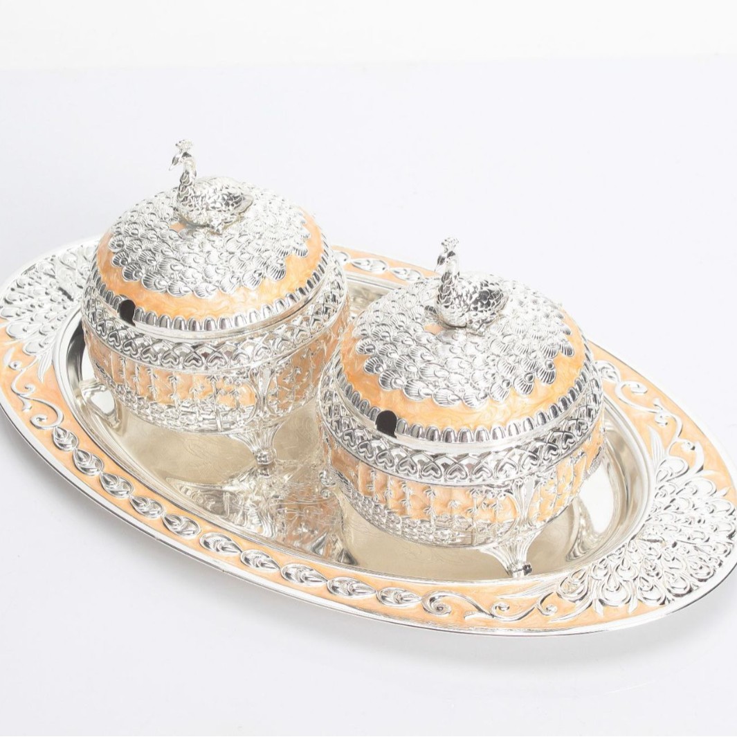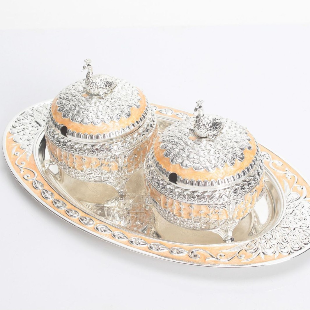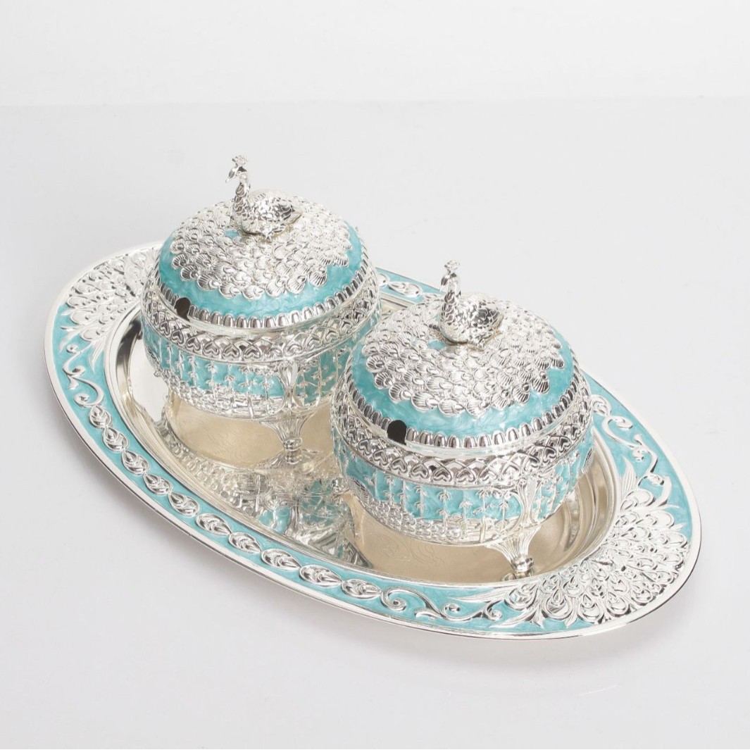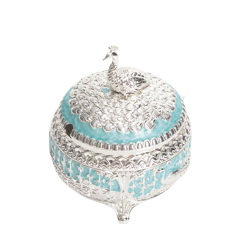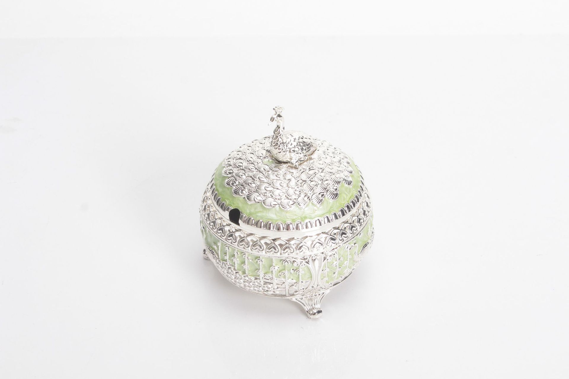 round green silver peacock sugar bowl jar