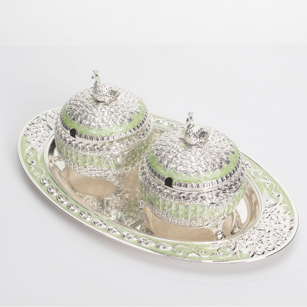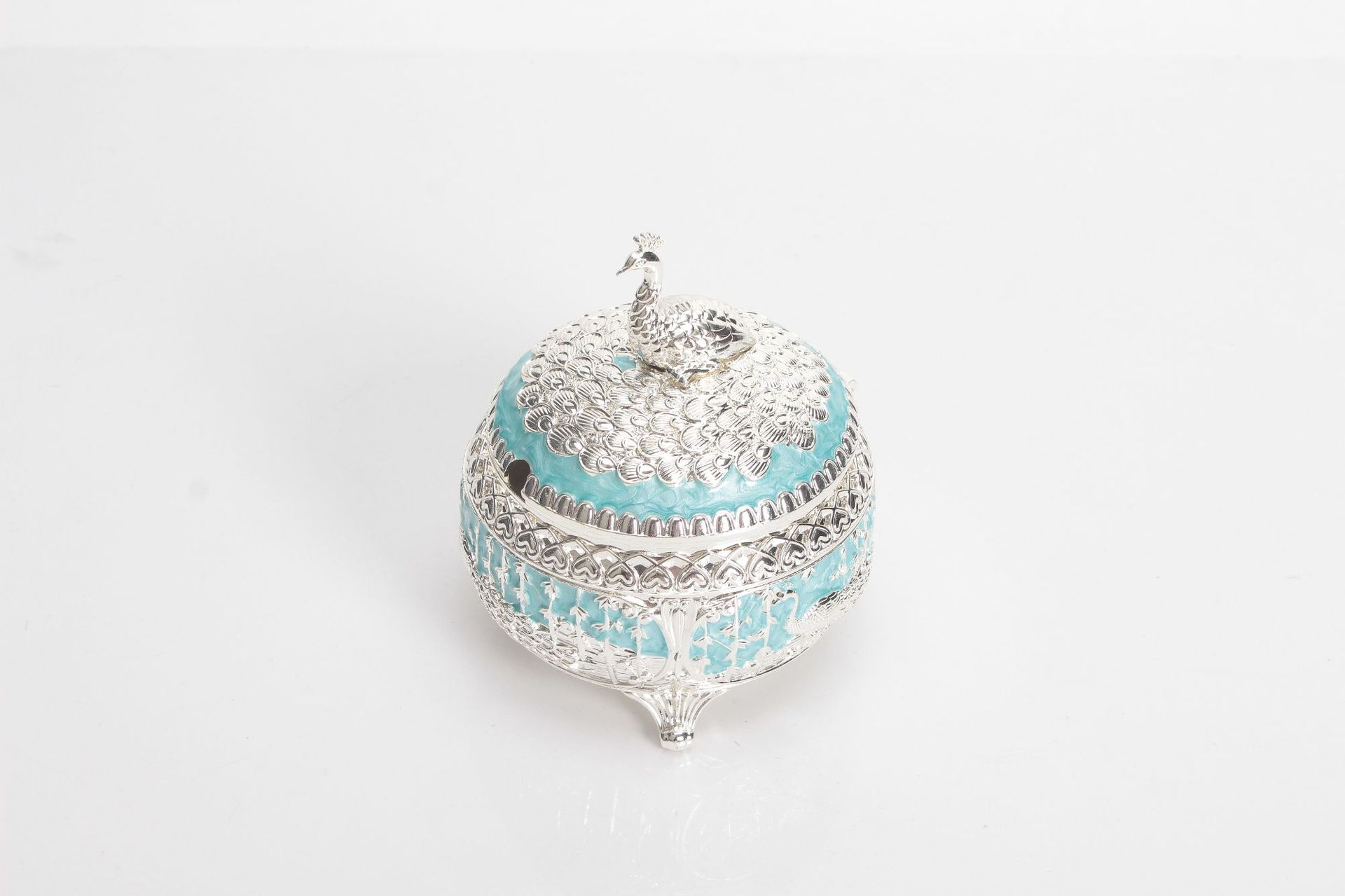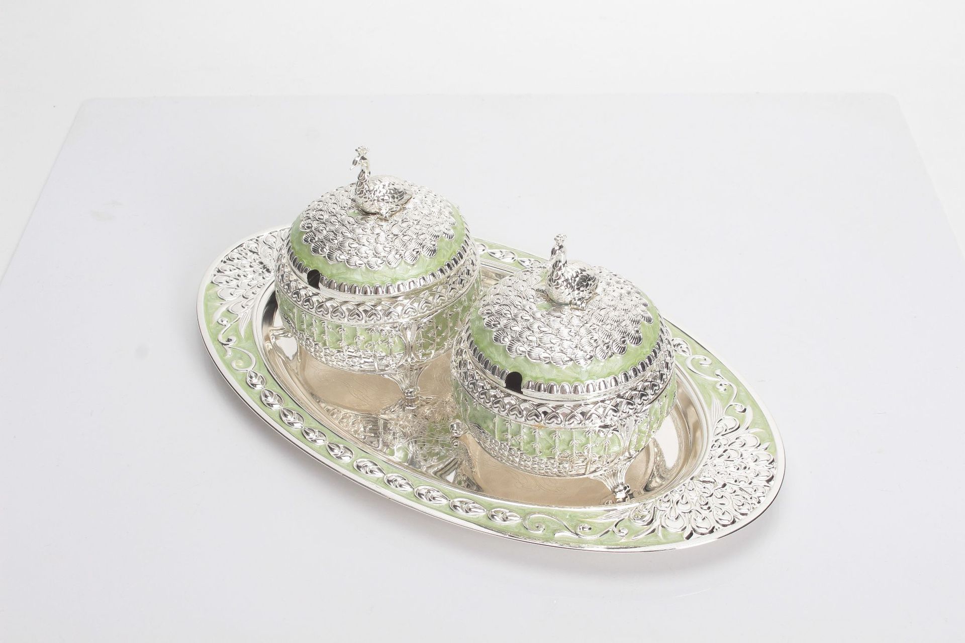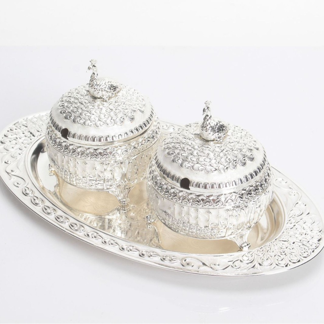 round green silver peacock sugar bowl jar