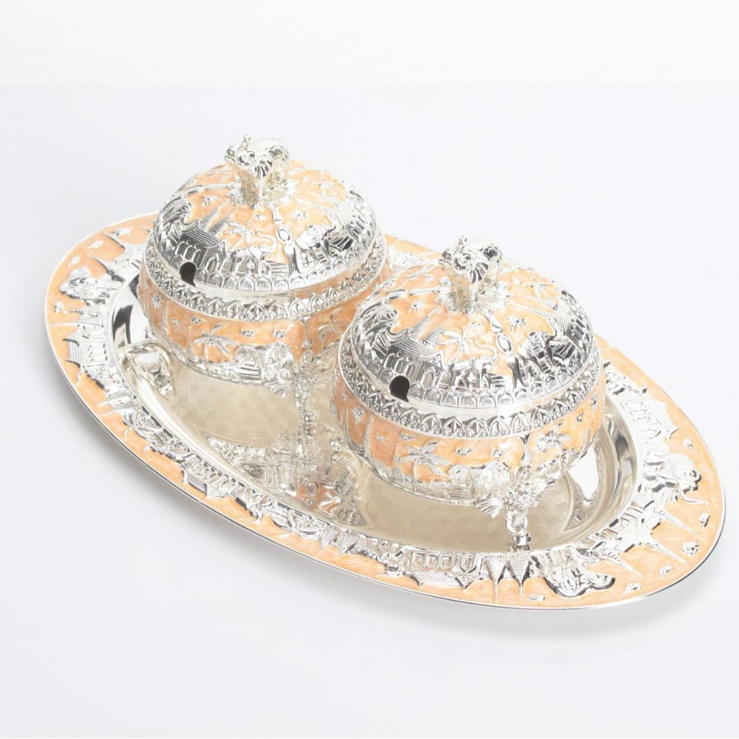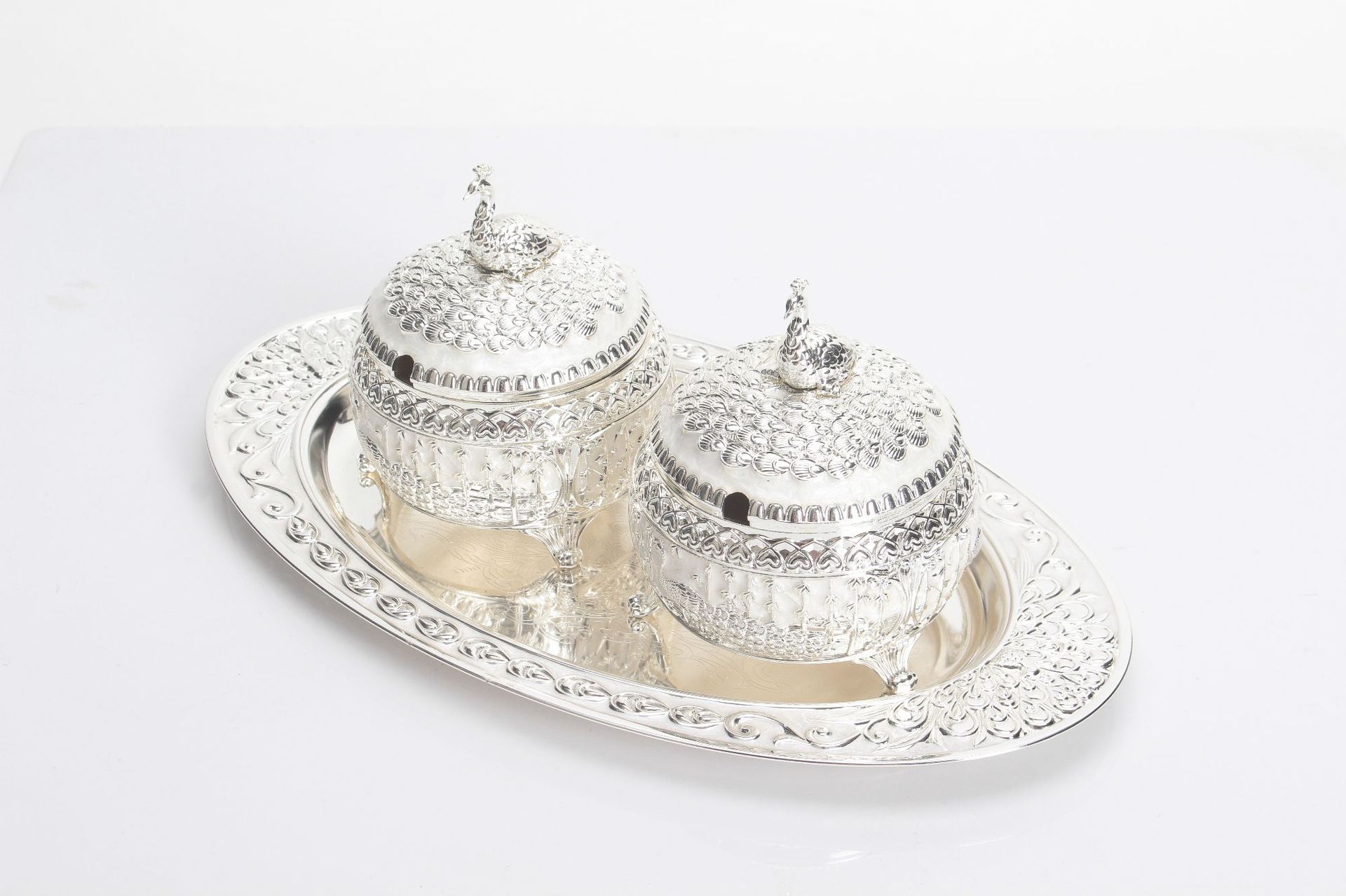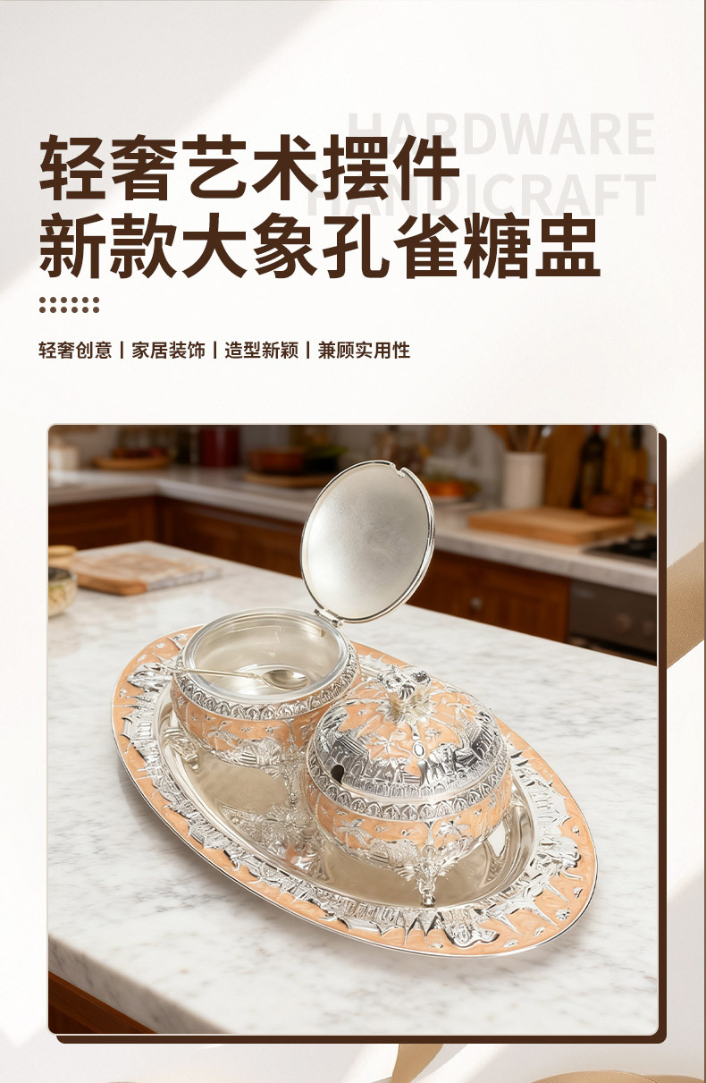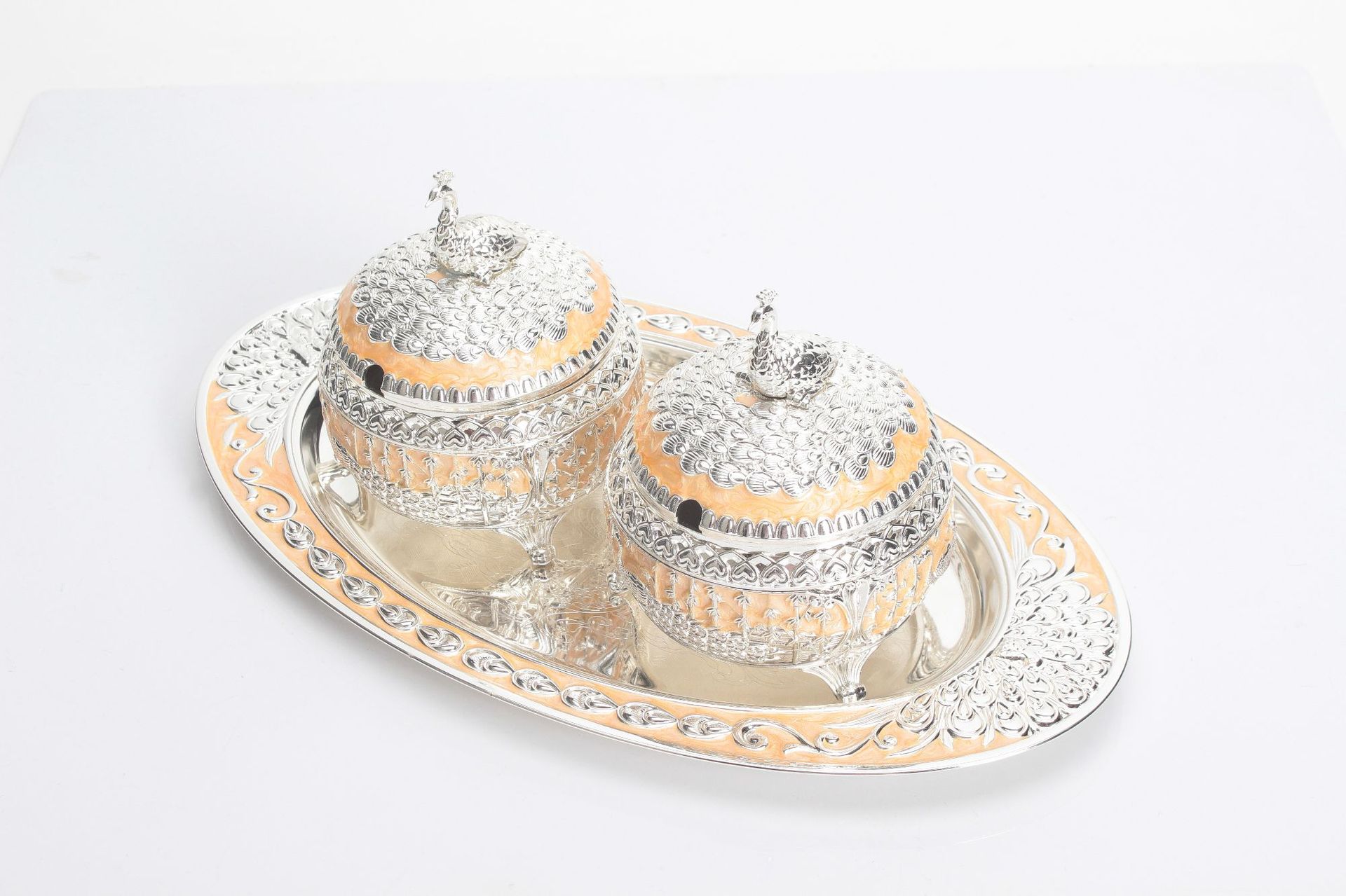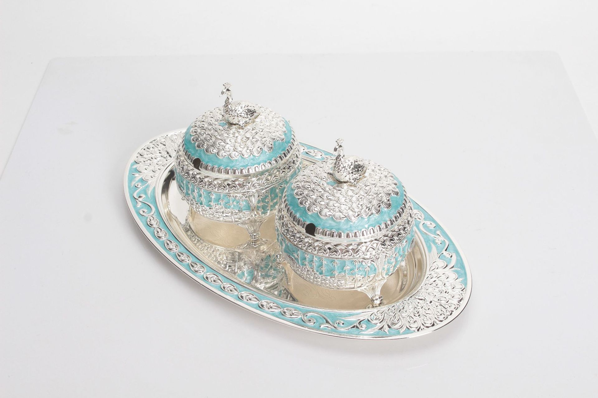 round green silver peacock sugar bowl jar