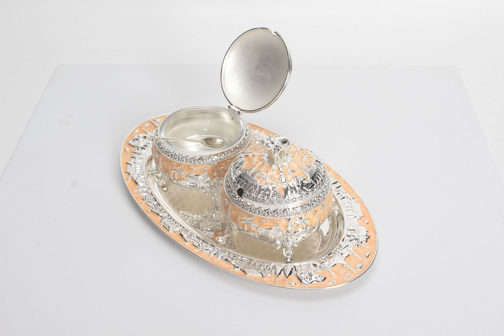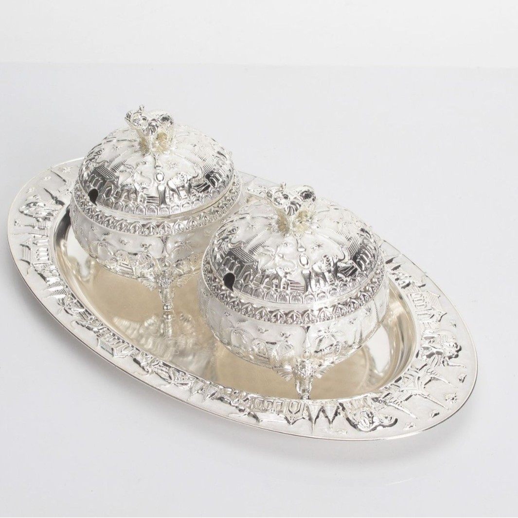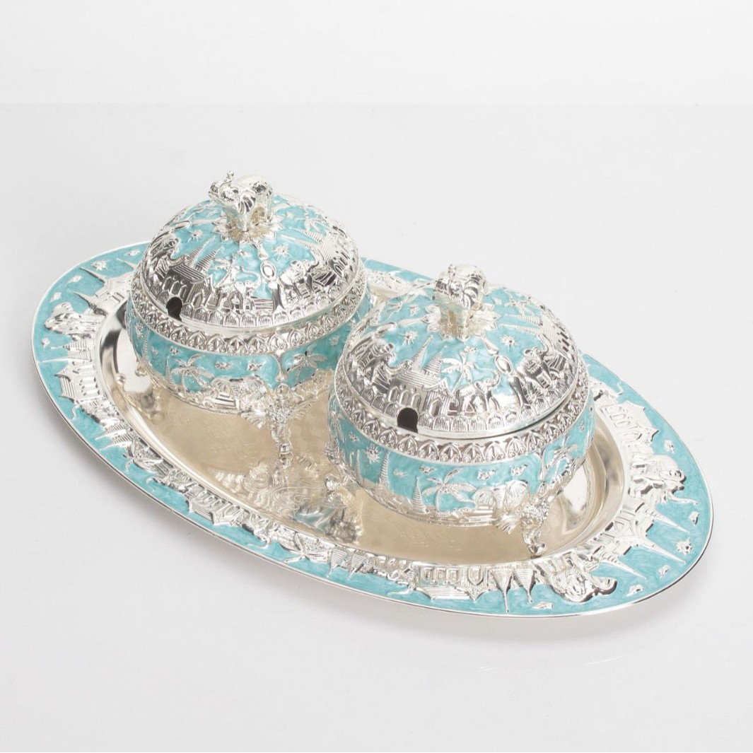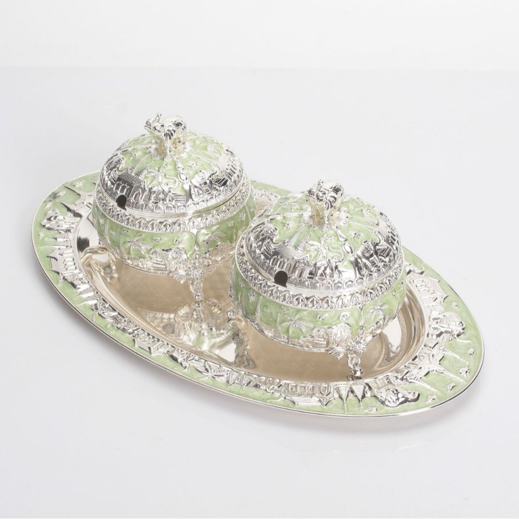 round green silver peacock sugar bowl jar