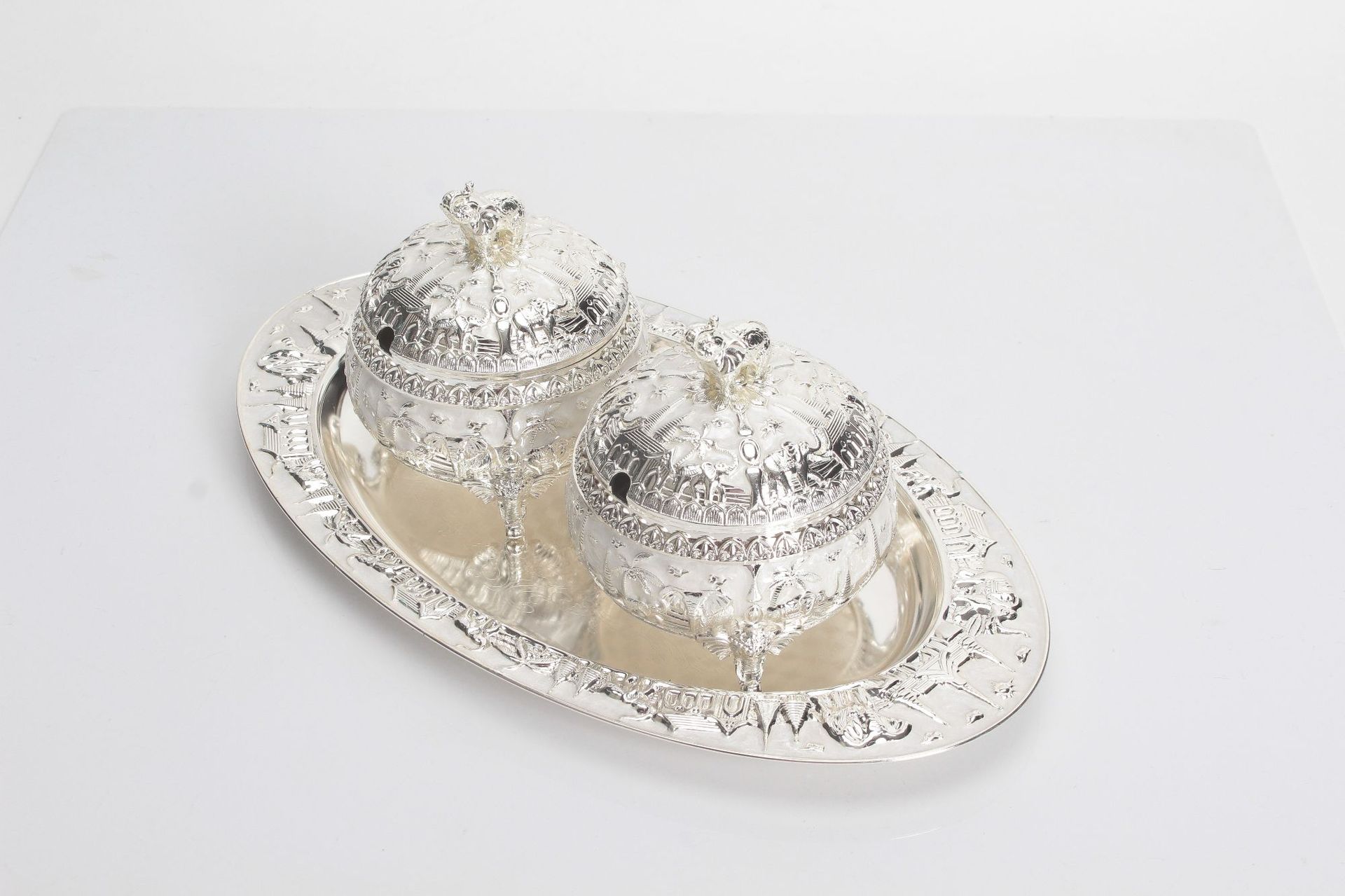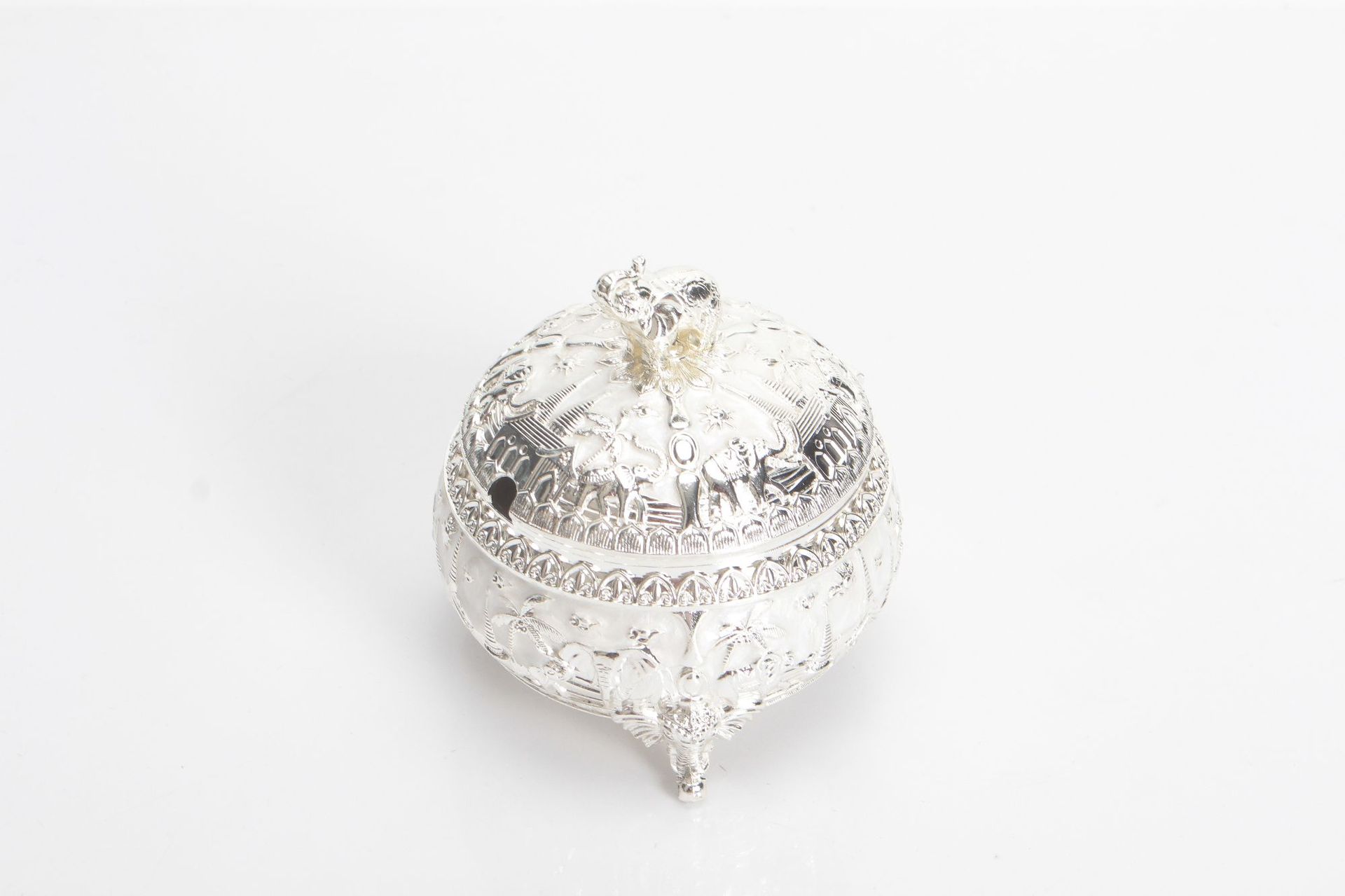 round silver-white elephant sugar bowl jar