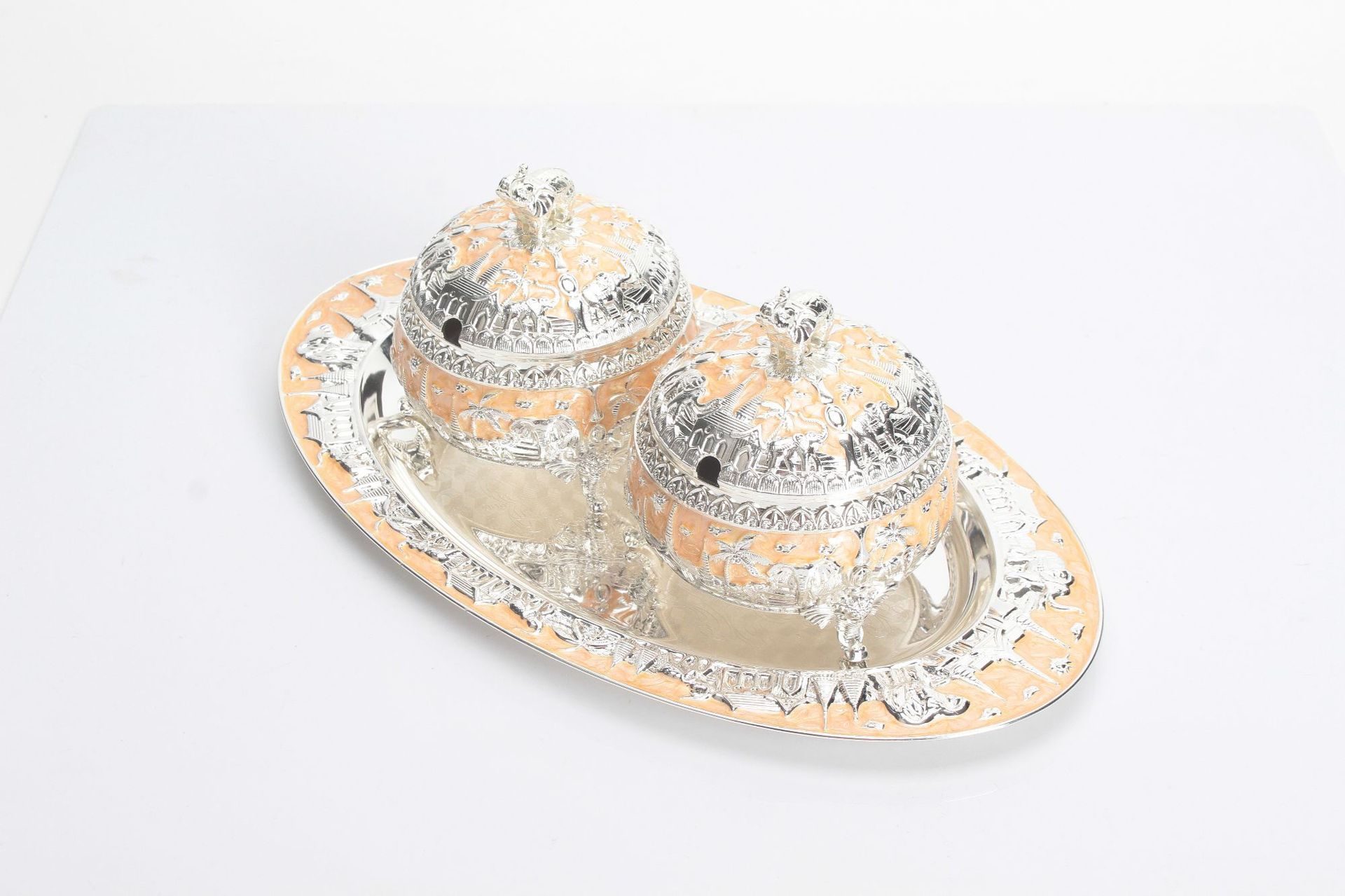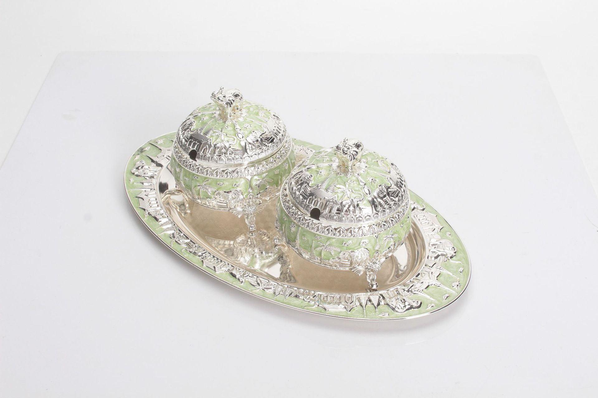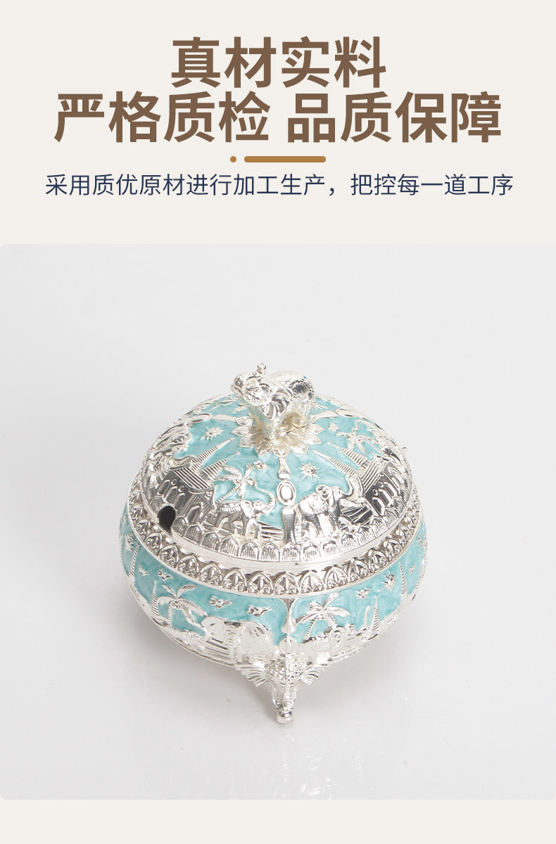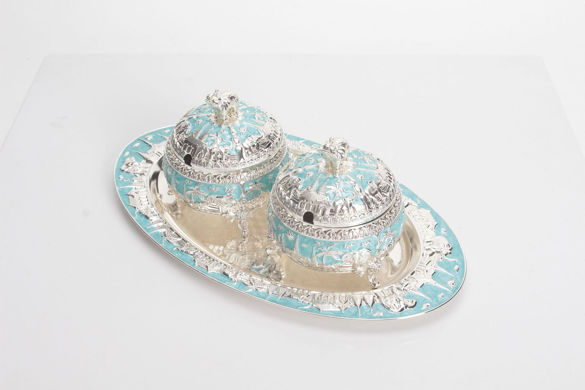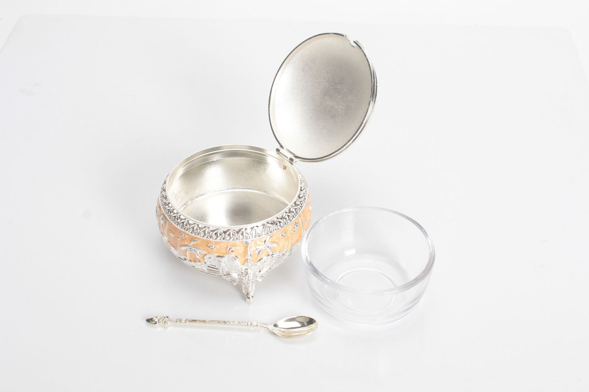 round green and silver elephant sugar bowl jar