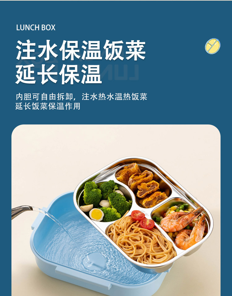 color: [blue new upgrade] 900ml two grids-[complimentary chopsticks