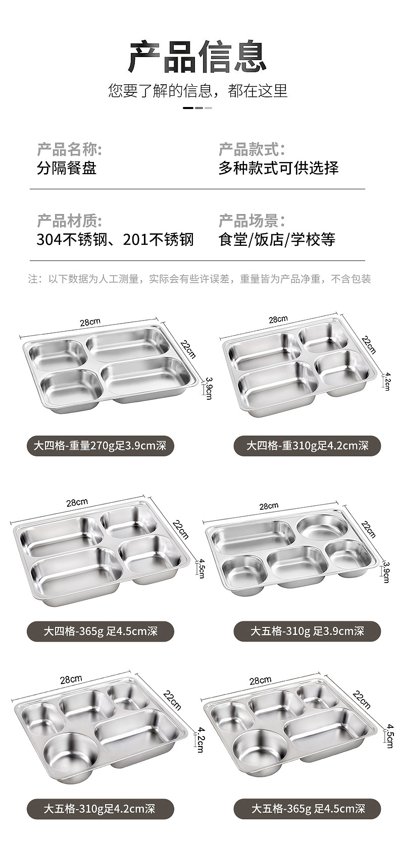 item no.: stainless steel divided plate