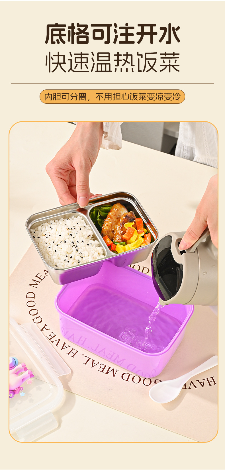 function: portable, large capacity, sealed, microwaveable heating