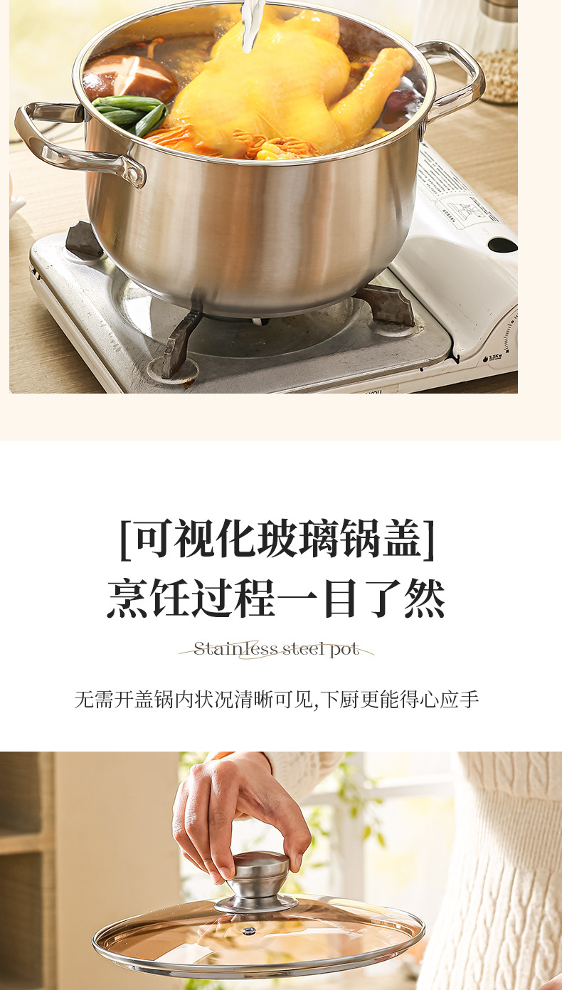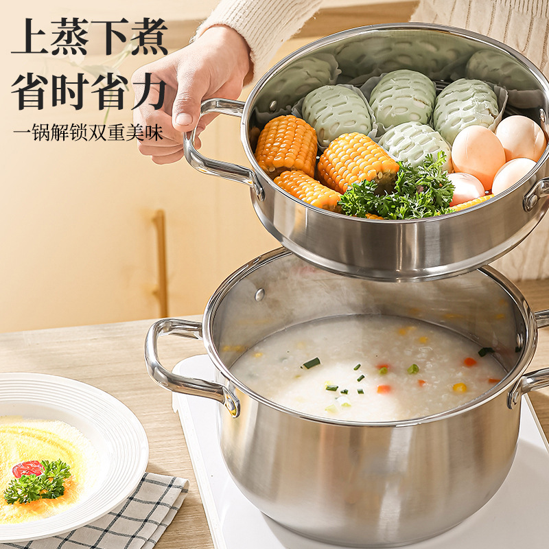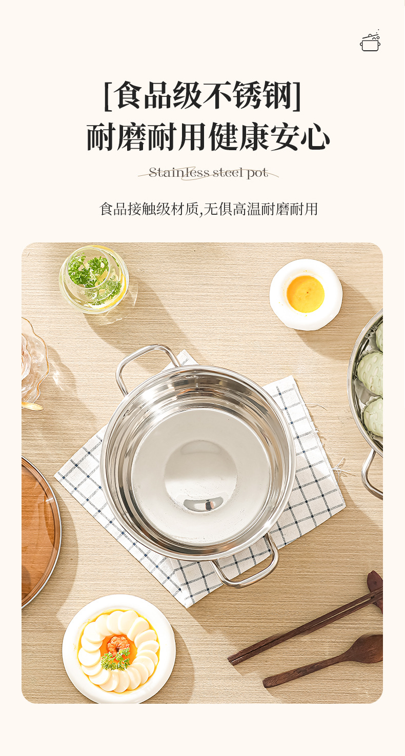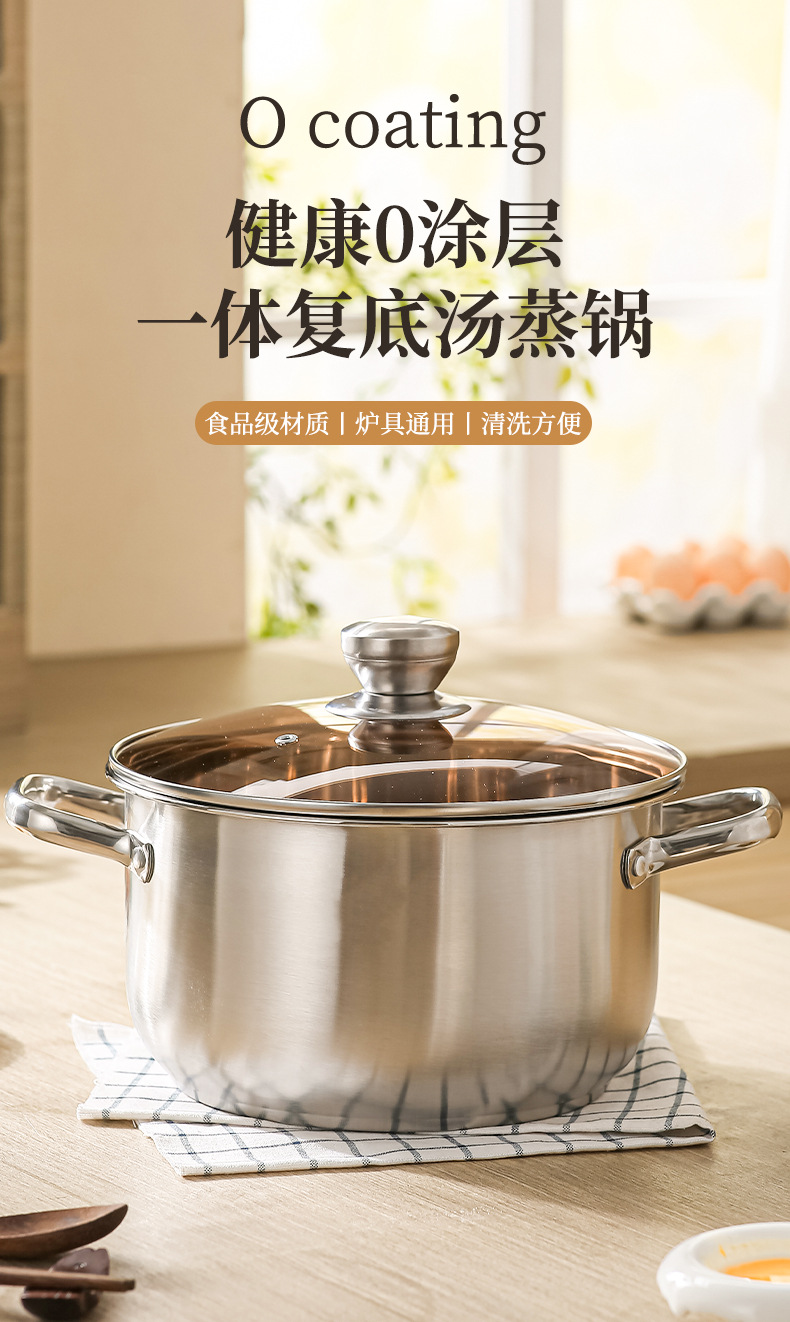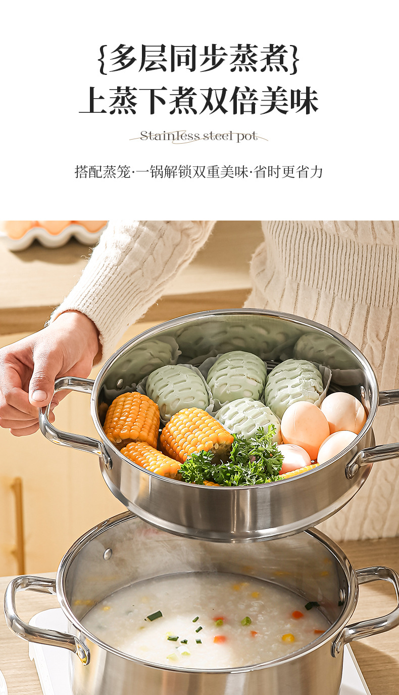 stainless steel soup pot, extra-thick food-grade home steamer, porridge pot, dedicated pot for induction cookers and gas stoves, boiled noodles pot