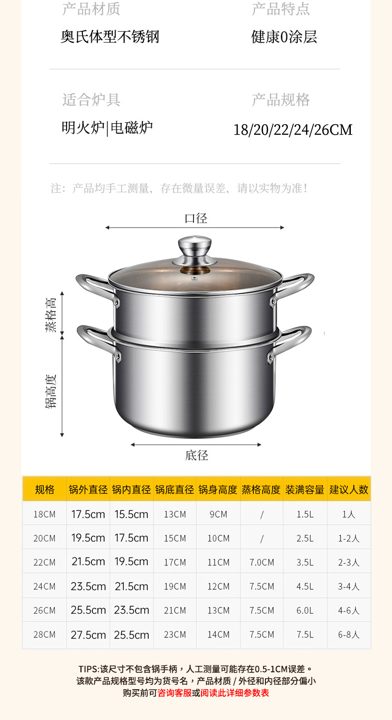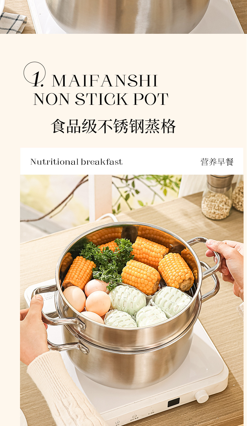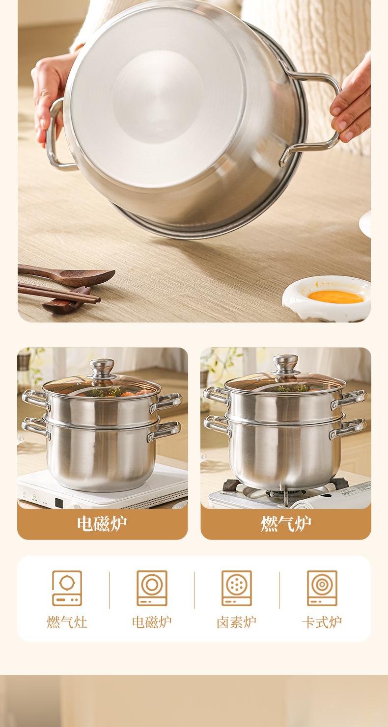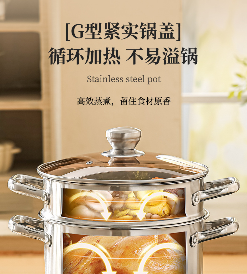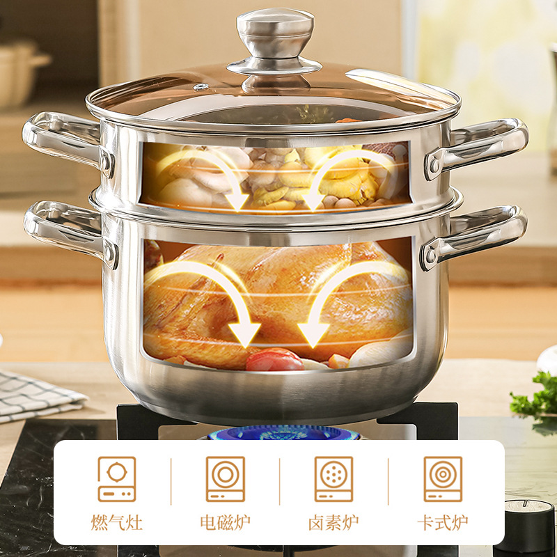 stainless steel soup pot, extra-thick food-grade home steamer, porridge pot, dedicated pot for induction cookers and gas stoves, boiled noodles pot