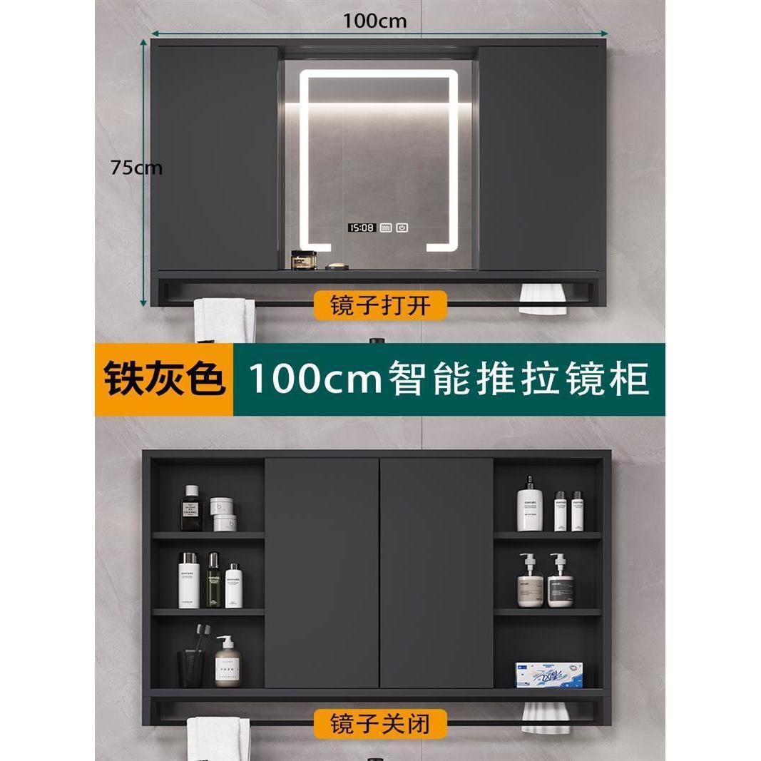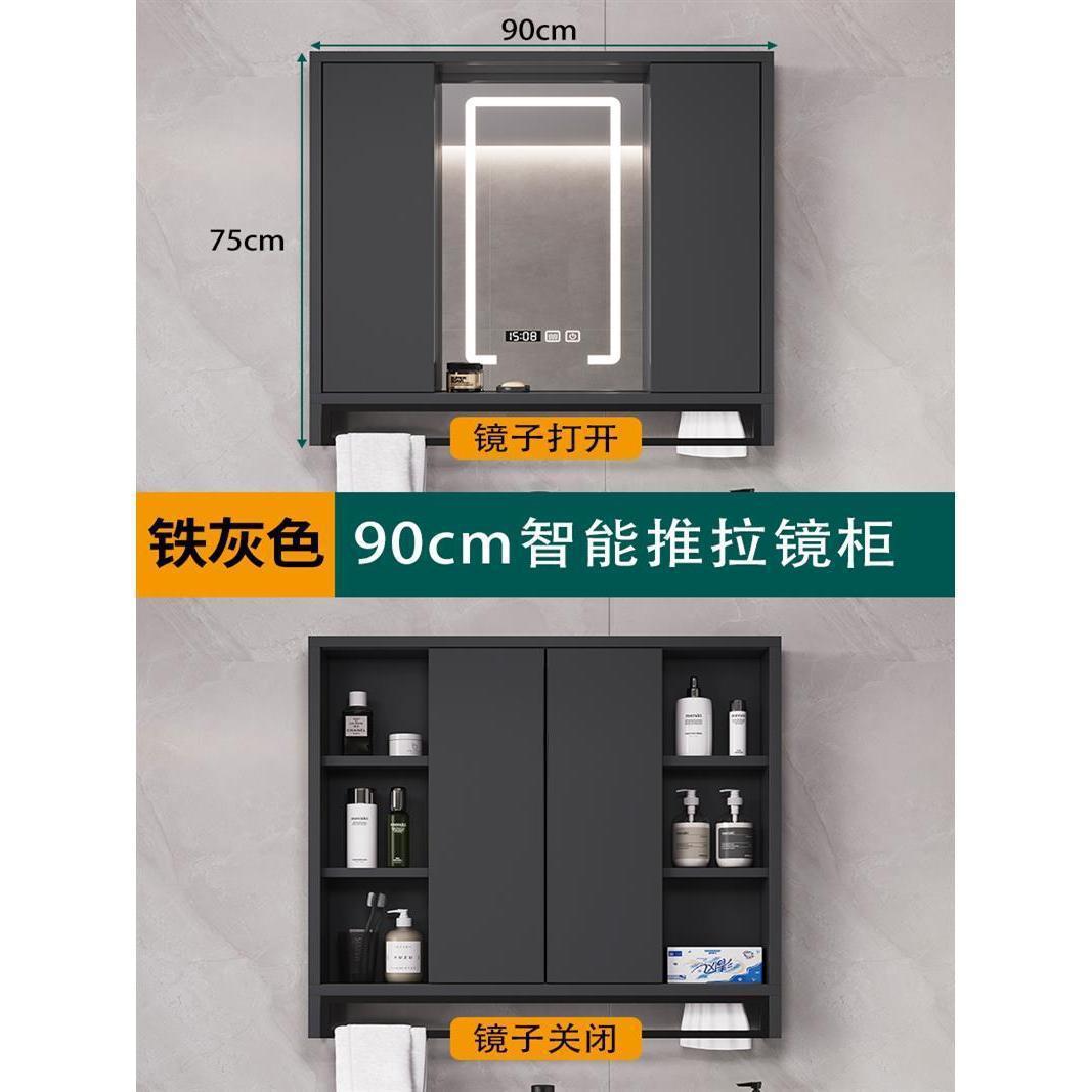90cm灰色智能推拉储物镜柜