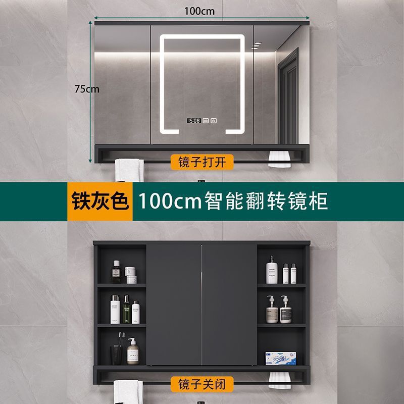 100cm灰色智能翻转储物镜柜