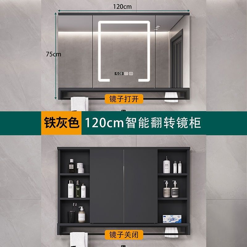 120cm灰色智能翻转储物镜柜