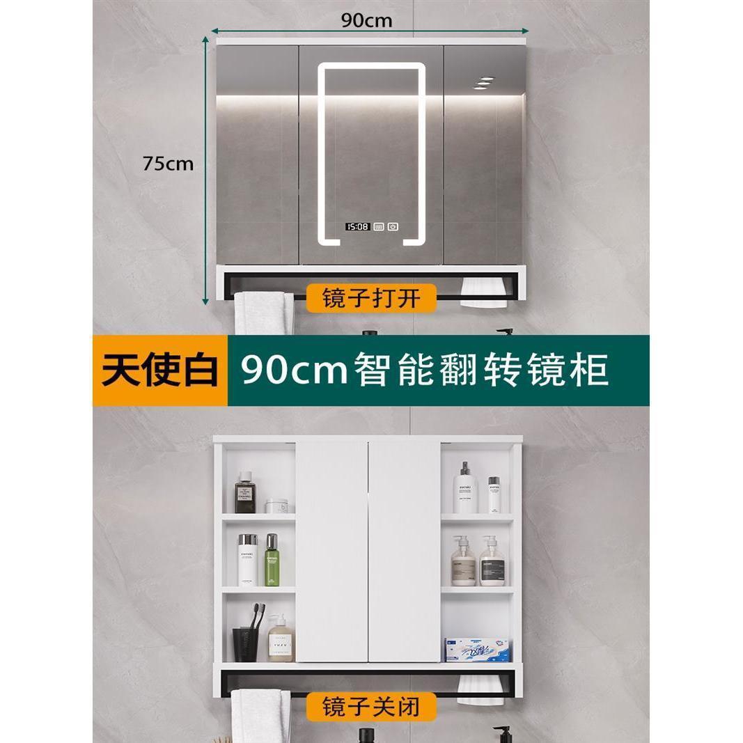 90cm白色智能翻转储物镜柜