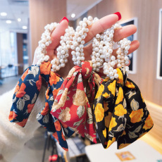 ins floral pearl ribbon internet celebrity hair ring bow headwear hair band female korean hair rope simple hair rope