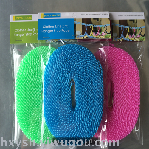 Plastic anti-skid/windproof clothesline, 5 meters long, with iron hooks at both ends. When drying clothes would not be blown away, is a domestic helper.