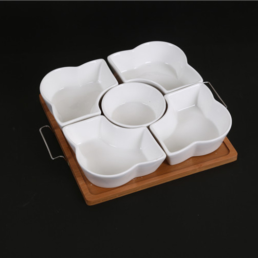 dry fruit snack dishes set bamboo ceramic set