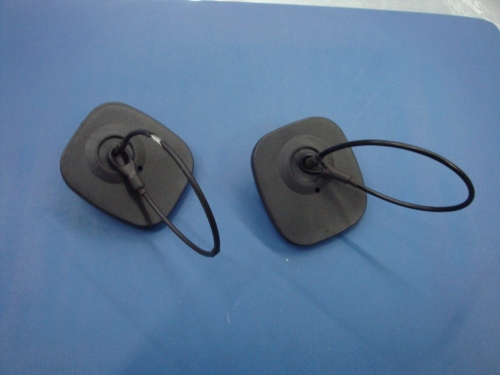 With rope small square anti-theft clasp for supermarket shoes, bags anti-theft, etc., the material is plastic, the origin is Zhejiang.