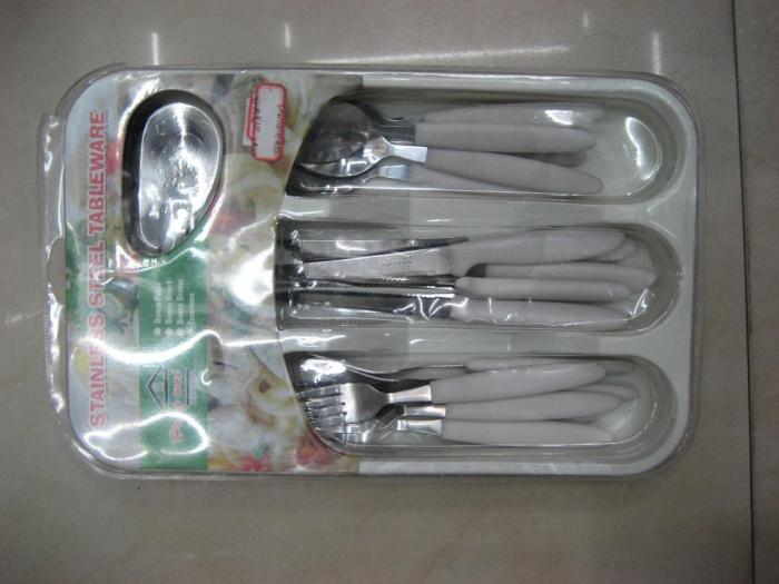 The metal parts are available with a polished or matte finish, including steak knives and serving sets.