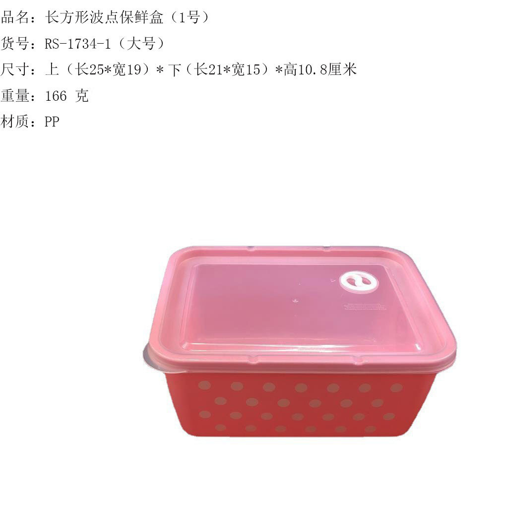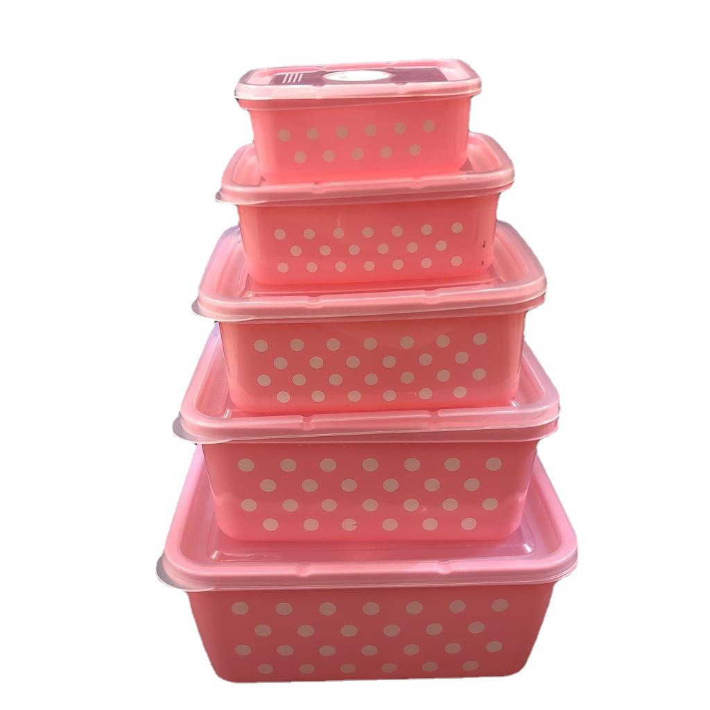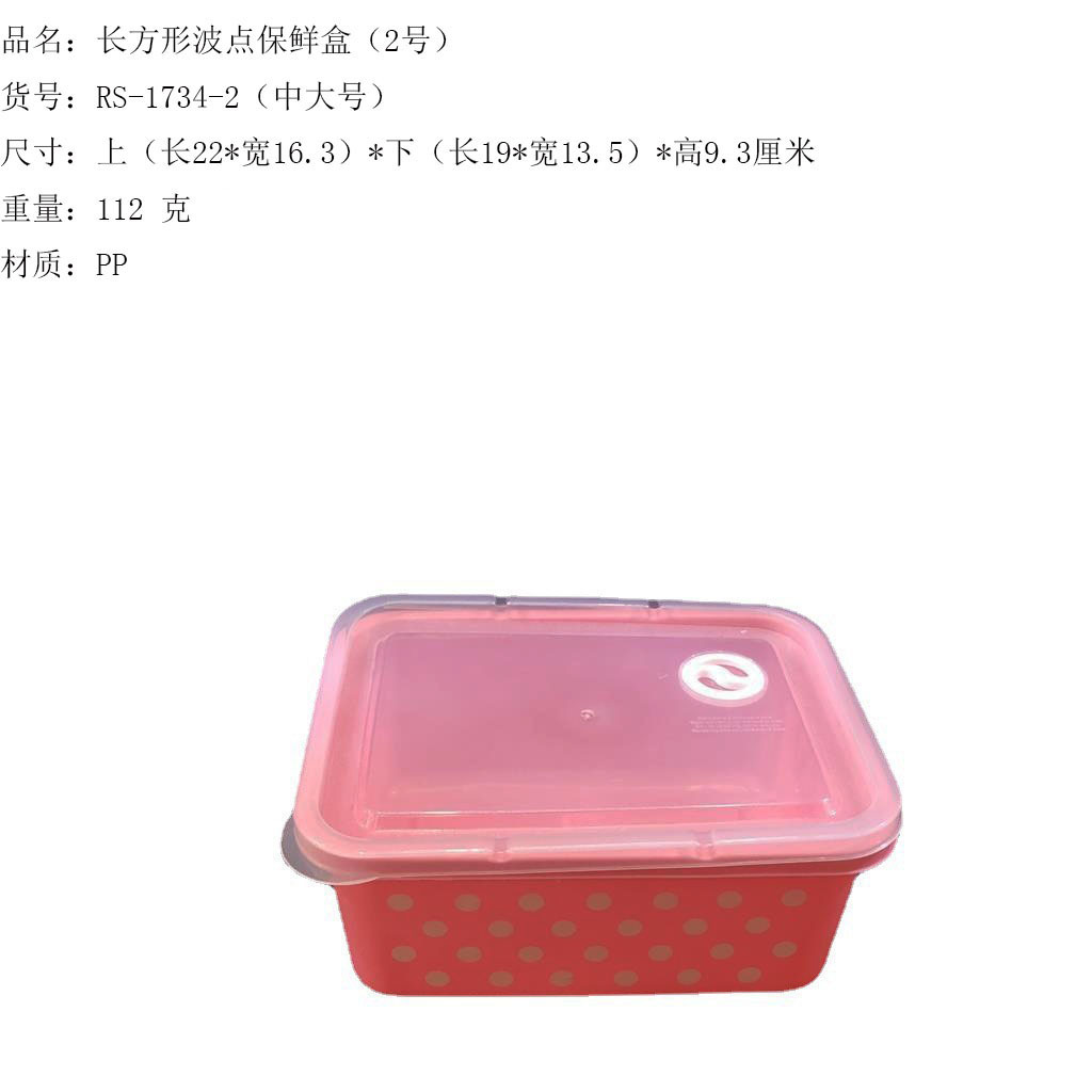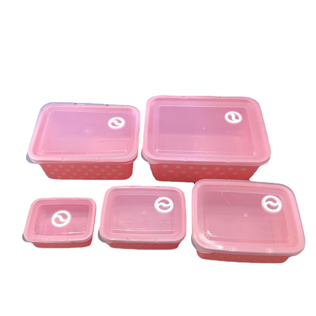 产品介绍 实色带气孔长方形波点保鲜盒5件套/广告礼品收纳保鲜盒套装采用优质食品级PP材质制作而成,材料不含双酚A(BPA free)保鲜盒可耐高温达120度,耐低温零下20度等特点。用于食物、水果、干湿货和休闲食品等收纳储存。其耐热、卫生,不易碎的特点也可用于微波炉、洗碗机、冰箱冷藏室及冷冻室,加热中不会释放有毒成分。适用于装放各种食物便于储藏和携带,是理想的居家生活用品。保鲜盒是可以放微波炉里加热(拧转出气孔),让你随时随地吃到热饭热菜哦。保鲜盒有一定的密封性可以保证食物的隔离放置,防止串味,防止食物受污,隔绝与外界的联系,有效地延长食物的保鲜期。是您工作、办公、上学、上班、户外旅游野餐等的好帮手。