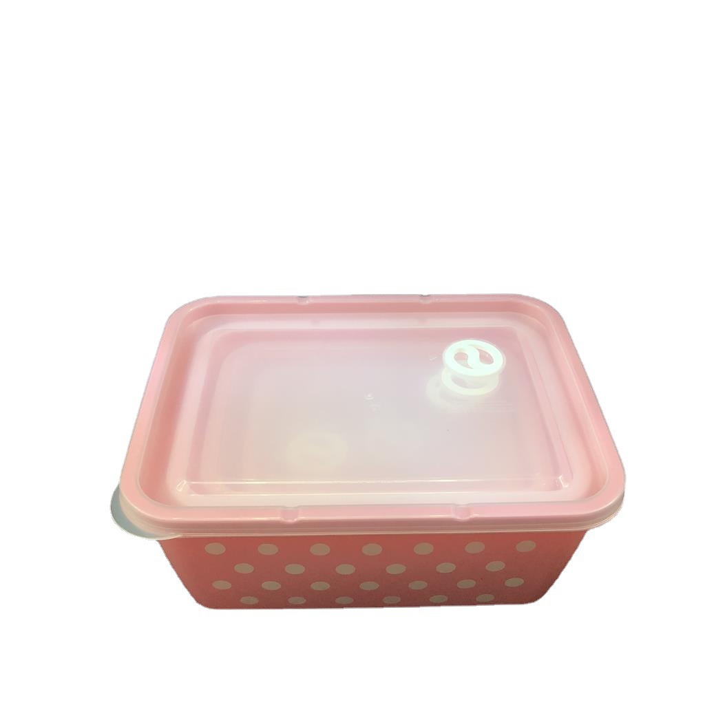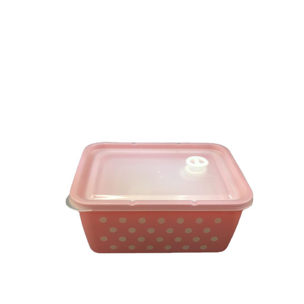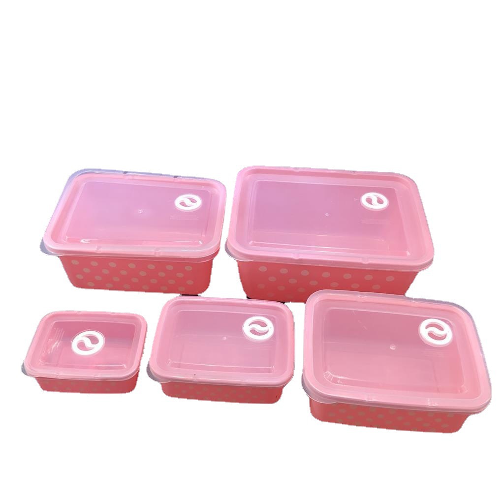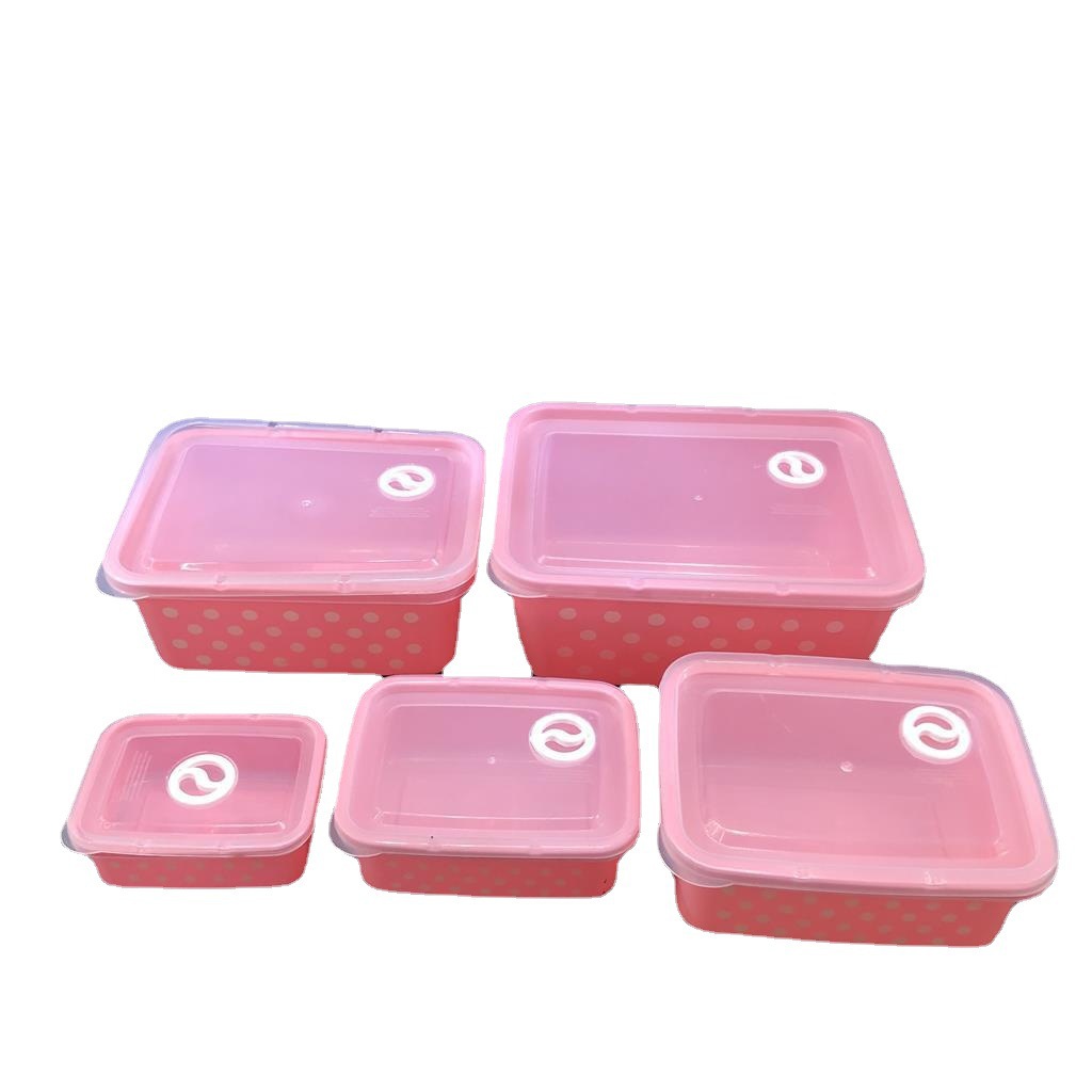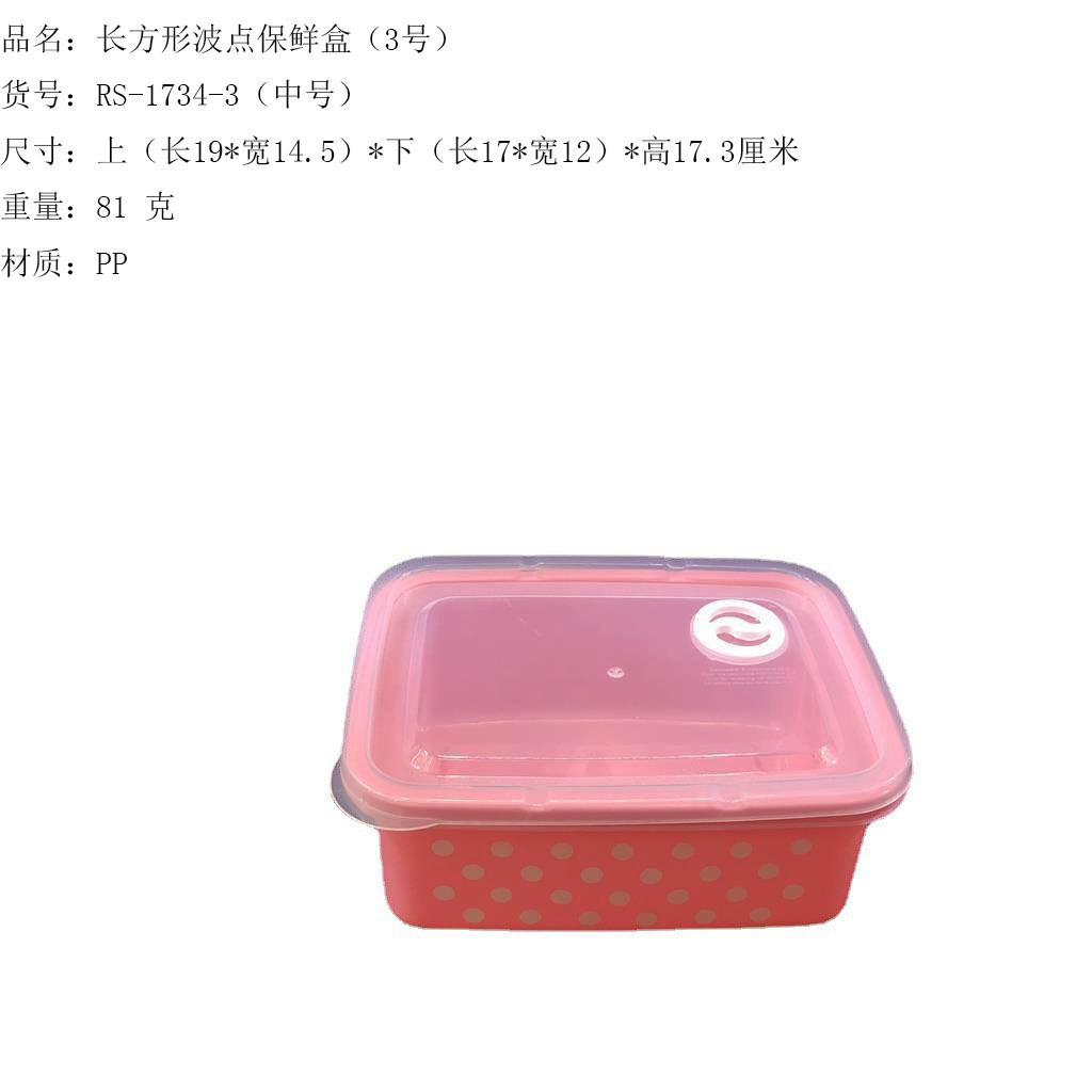 产品介绍 实色带气孔长方形波点保鲜盒5件套/广告礼品收纳保鲜盒套装采用优质食品级PP材质制作而成,材料不含双酚A(BPA free)保鲜盒可耐高温达120度,耐低温零下20度等特点。用于食物、水果、干湿货和休闲食品等收纳储存。其耐热、卫生,不易碎的特点也可用于微波炉、洗碗机、冰箱冷藏室及冷冻室,加热中不会释放有毒成分。适用于装放各种食物便于储藏和携带,是理想的居家生活用品。保鲜盒是可以放微波炉里加热(拧转出气孔),让你随时随地吃到热饭热菜哦。保鲜盒有一定的密封性可以保证食物的隔离放置,防止串味,防止食物受污,隔绝与外界的联系,有效地延长食物的保鲜期。是您工作、办公、上学、上班、户外旅游野餐等的好帮手。